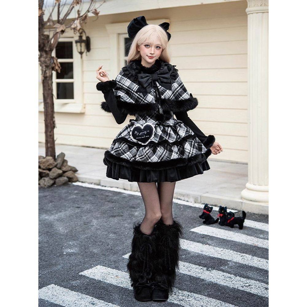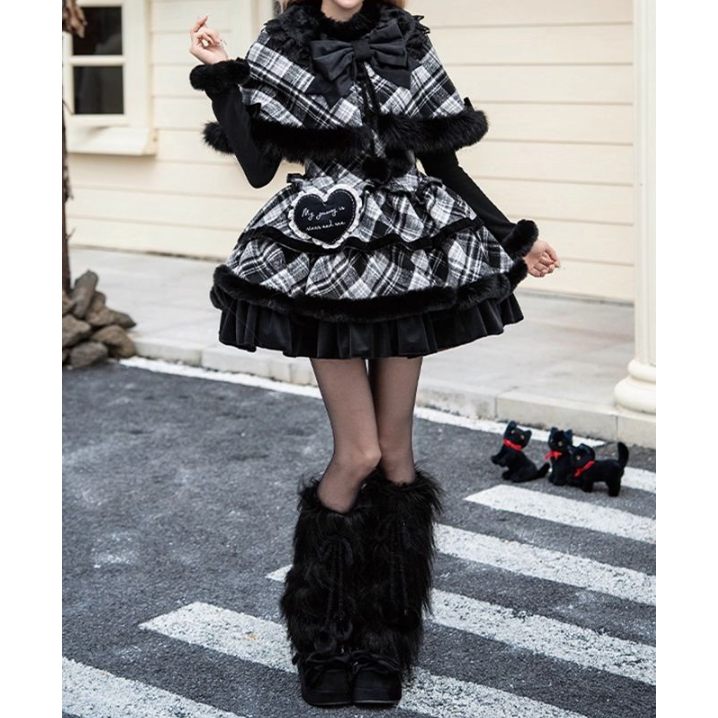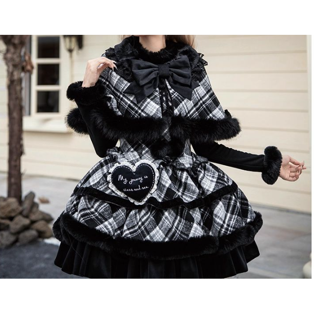 👋大家好,今天要给大家种草的是一款超级温暖的冬季单品——雪夜冬日 格纹jsk披肩双子冬季lo裙三件套装!真的是一见钟情般的美丽!