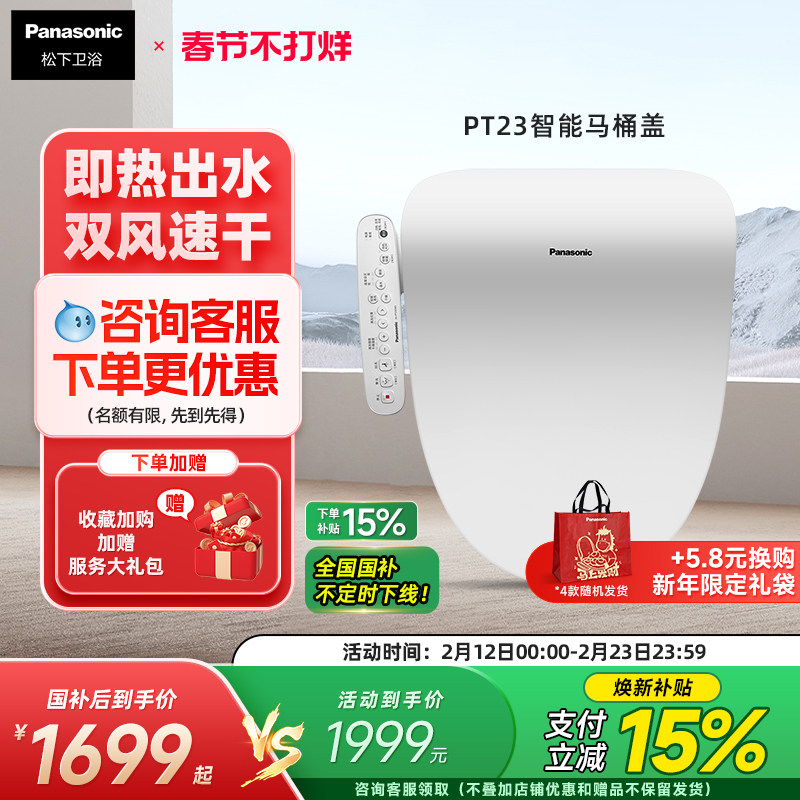 📚 【新品】松下智能马桶盖即热出水双风道烘干智能节电智能盖板PT23