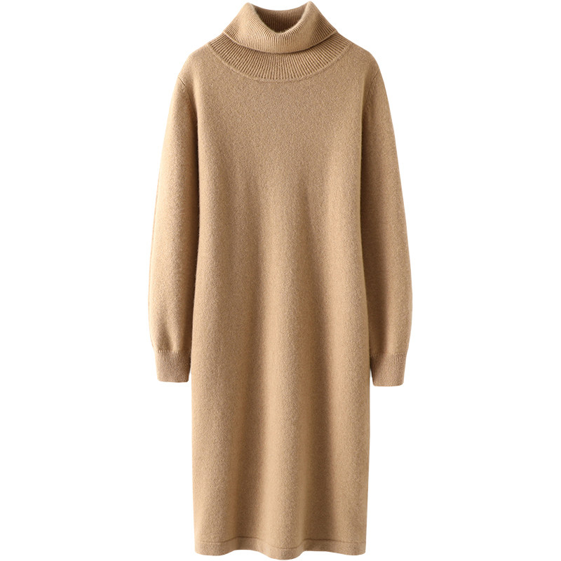 📚 美得很轻松!高领羊绒衫女中长款纯羊绒毛衣针织连衣裙子宽松加厚