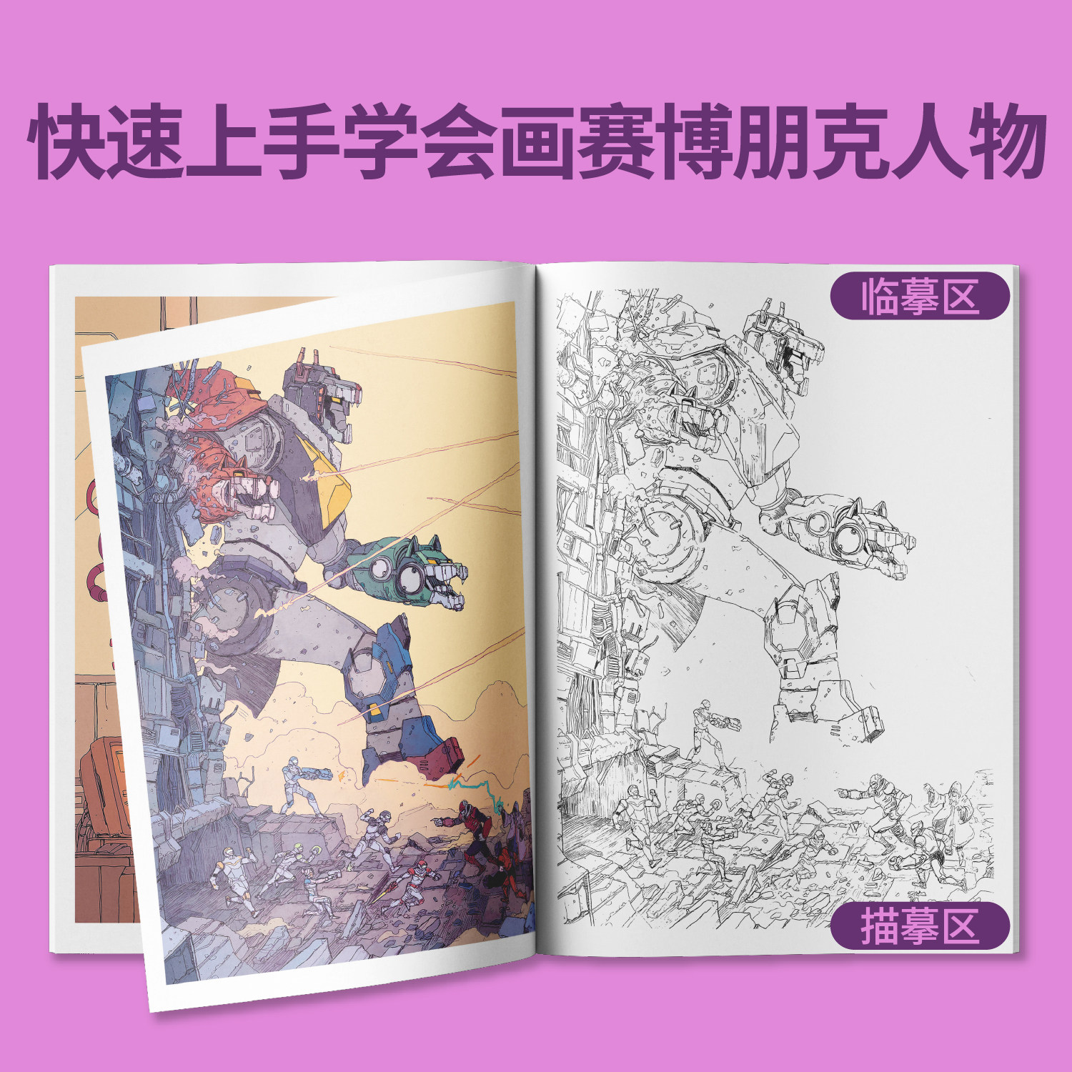 📚 赛博朋克游戏动漫线稿漫画描摹本儿童画画涂色本描画图画绘画临摹画册小学生专业练习描红画本加厚纸张基础入门控笔训练简笔画素描