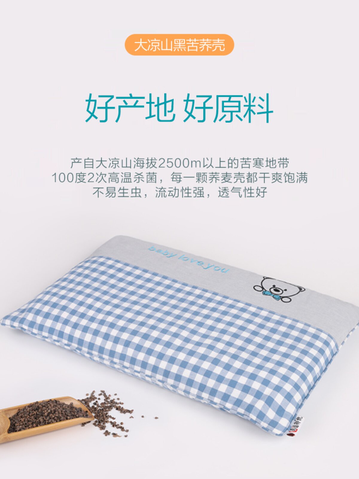 📚 蜀国御荞麦枕儿童低枕头3-12岁四季舒适棉质透气男女单人枕头芯u.