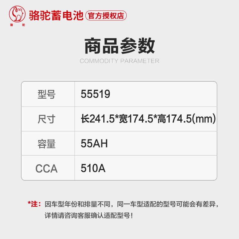 📚 骆驼蓄电池55519适配福克斯传祺赛欧名爵马自达2/3汽车电瓶55AH