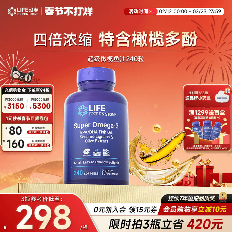 📚 沿寿LIFE橄榄鱼油4倍高浓缩dha中老年epa欧米伽omega3深海软胶囊