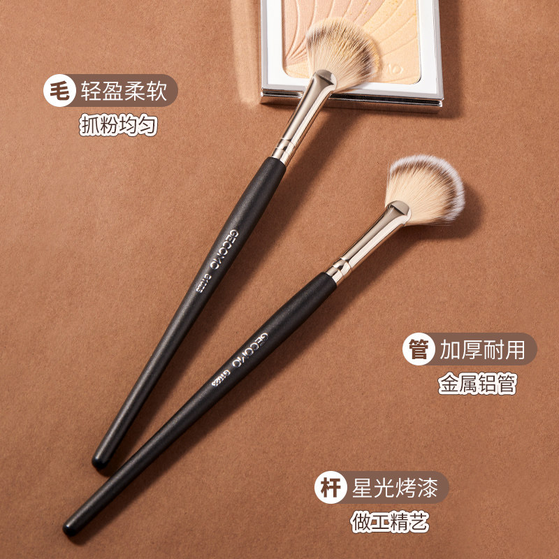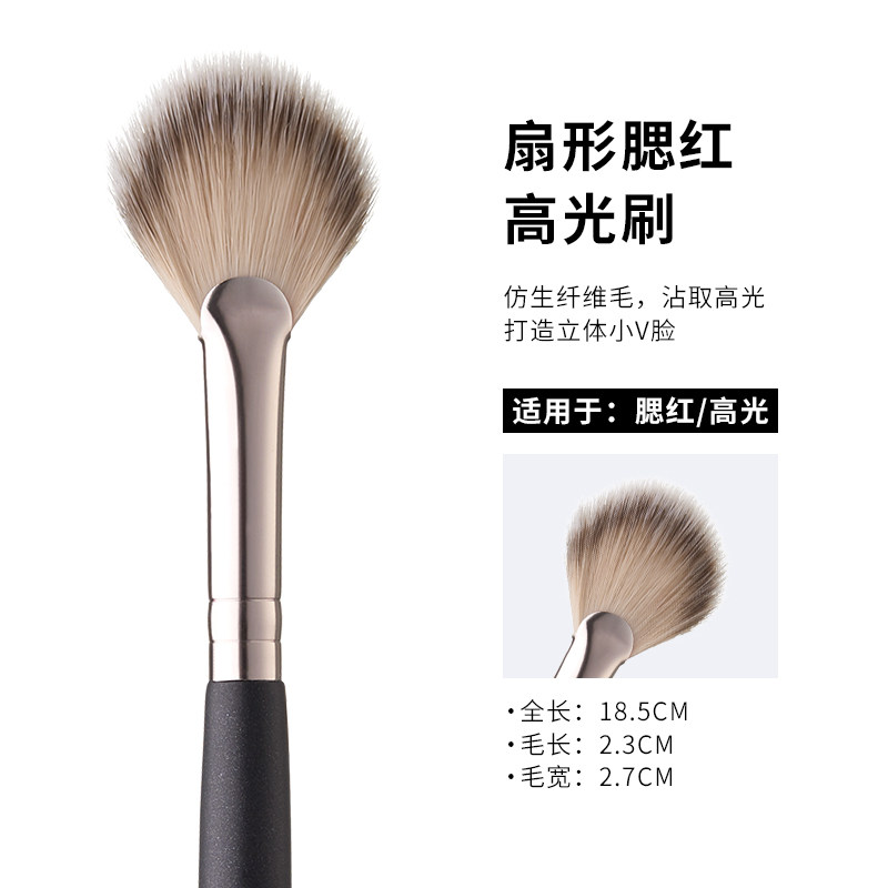 📚 扇形腮红高光化妆刷扁平超软毛一支装纤维不吃粉便携工具初学者
