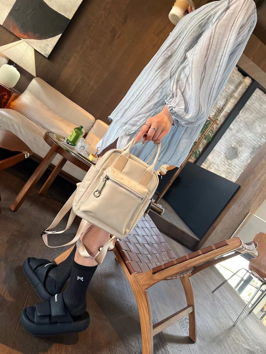 38¥ HU287 ZJwfULtIlld¥ https://m.tb.cn/h.7B3Juig CinvaiKrose女2024新款设计感小众轻便逛街旅游背包手提防水帆布 --------------------- 【原售价】168元 【现售价】168元。