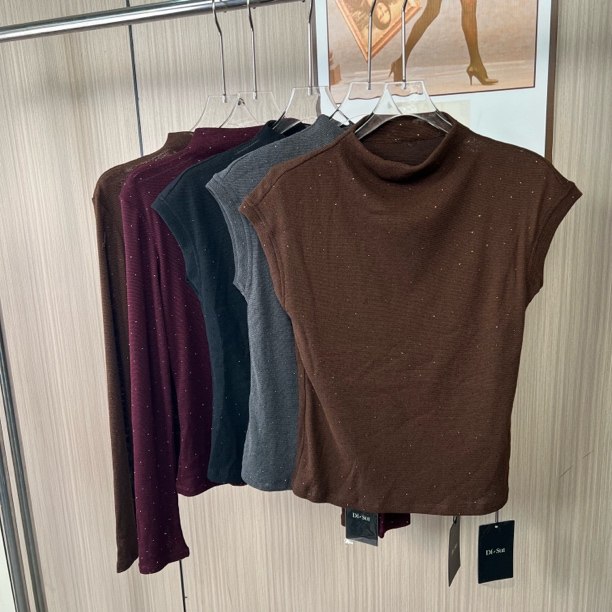 📚 6023撤柜DS高领柔软T恤修身上衣新款显瘦气质半袖短袖短款打底