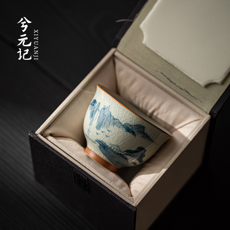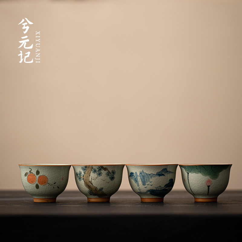 📚 兮元记哥窑手绘茶杯陶瓷主人杯个人专用品茗杯子功夫茶具茶盏送礼