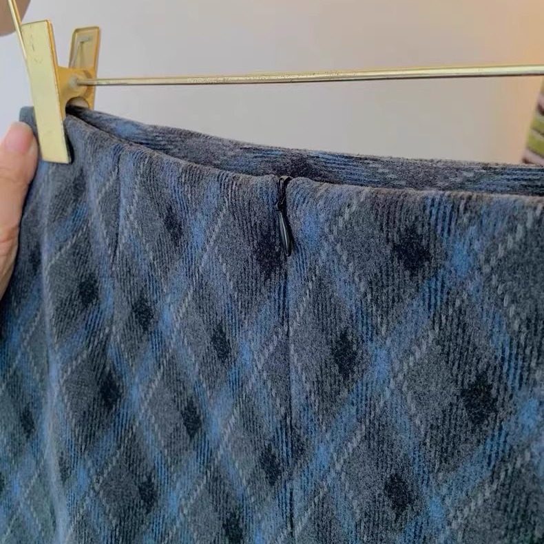 📚 蓝灰色格子毛呢半身裙女2025秋冬款高腰显瘦A字包臀短裙大码外穿