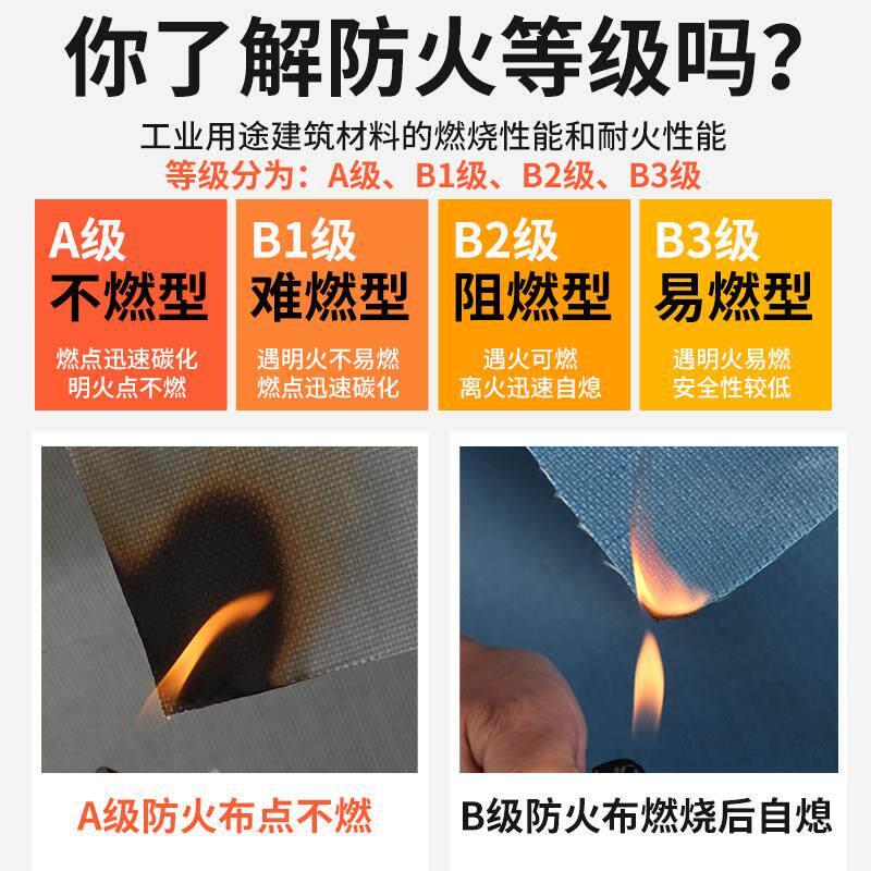 📚 A级灰色暴厚防火布阻燃布软连结隔热耐高温防水防晒篷布接焊渣布