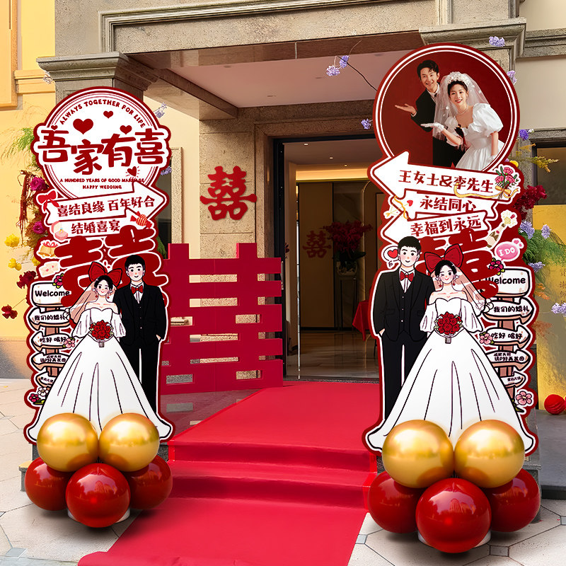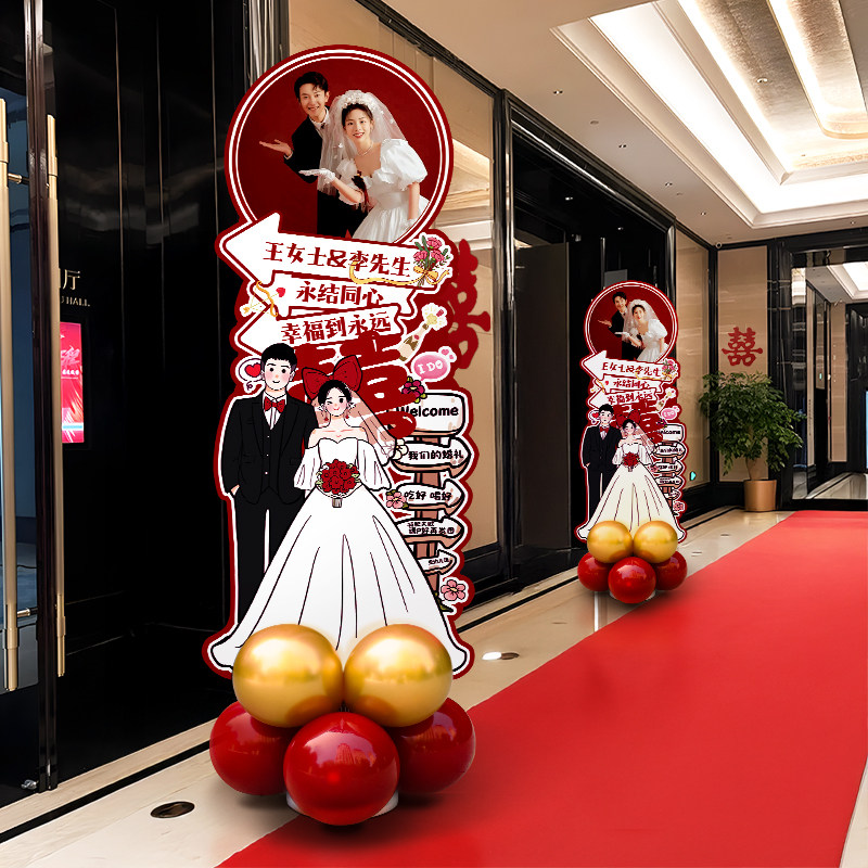 📚 农村结婚路引装饰人形立牌迎宾牌KT板布置订婚定制卡通指示牌海报
