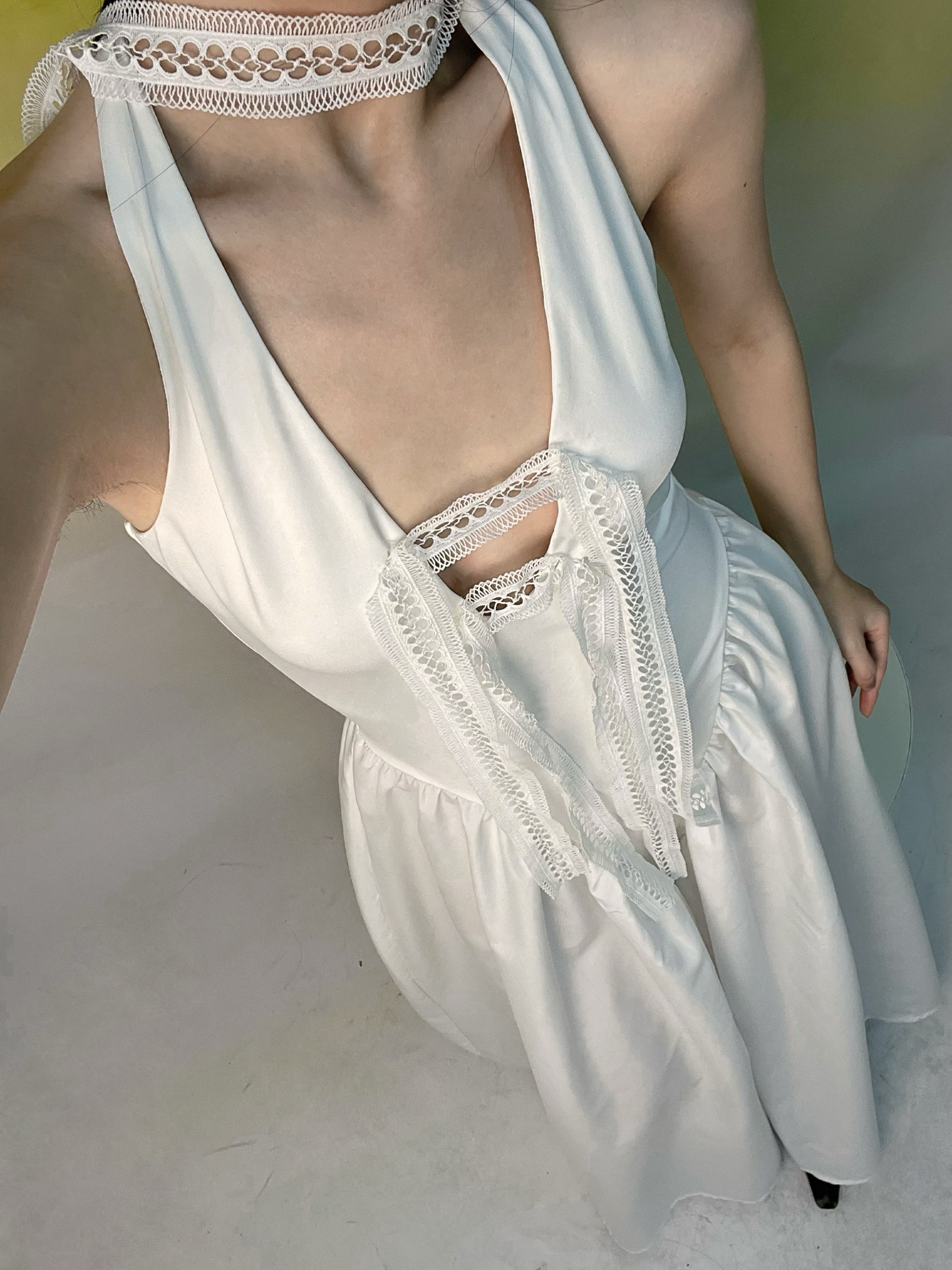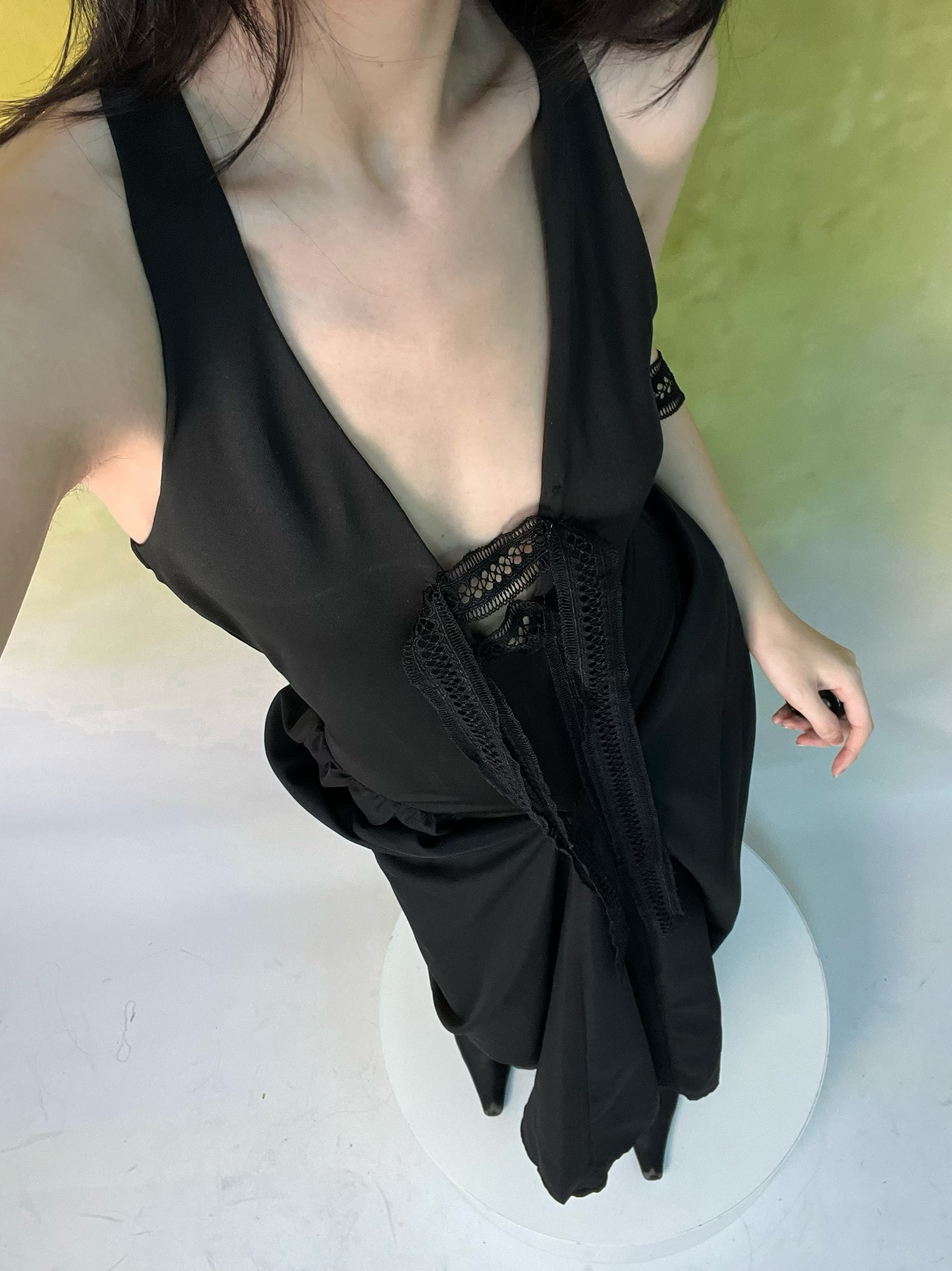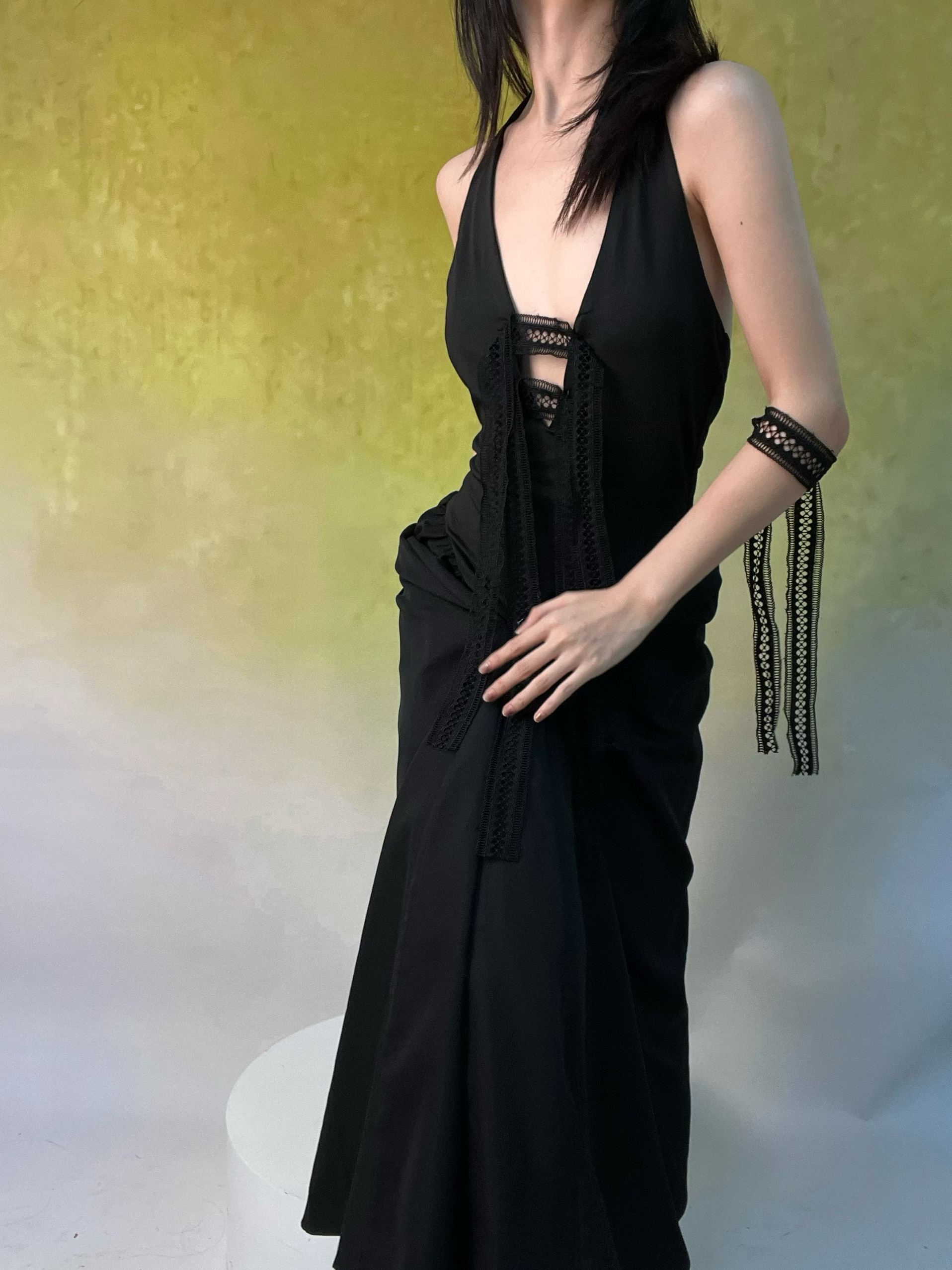 📚 古典蕾丝两穿女巫风挂脖复古大摆个性A字长款连衣裙