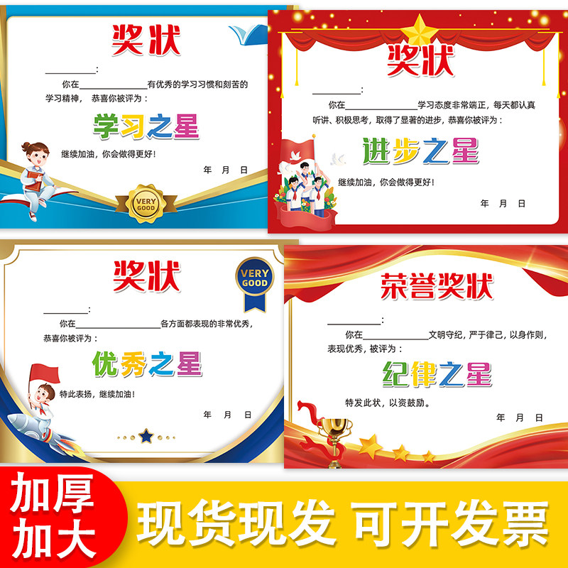 📚 A4新款小学生奖状小学生数学奖状 小学生优秀之星奖状 进步之星奖状课堂之星 期中 期末 培训班 可定制可混搭
