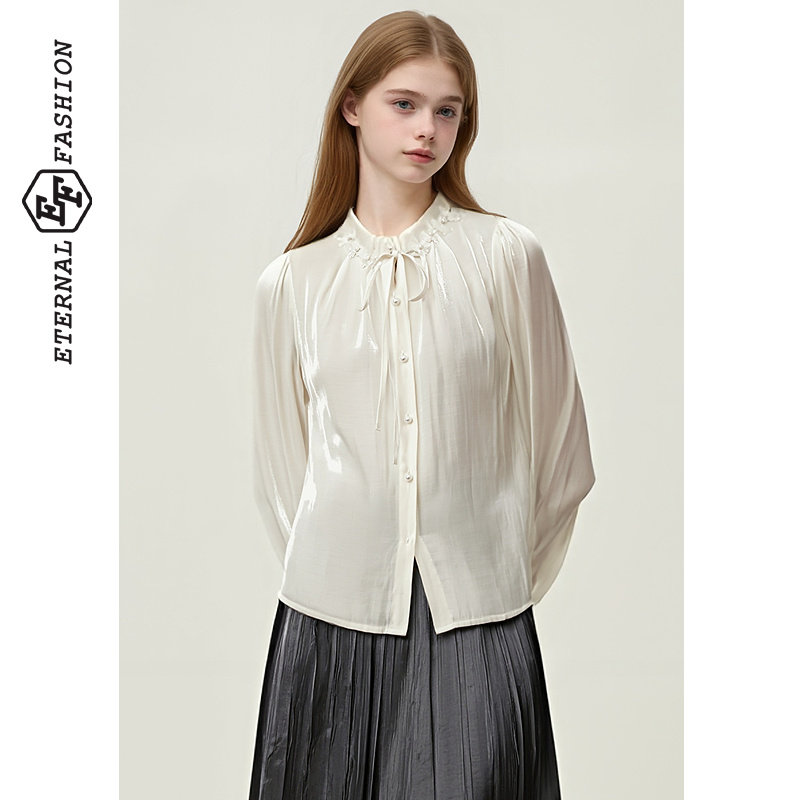 📚 EF【商场同款】温柔风时尚气质简约衬衫2025秋冬新款绑带气质上衣