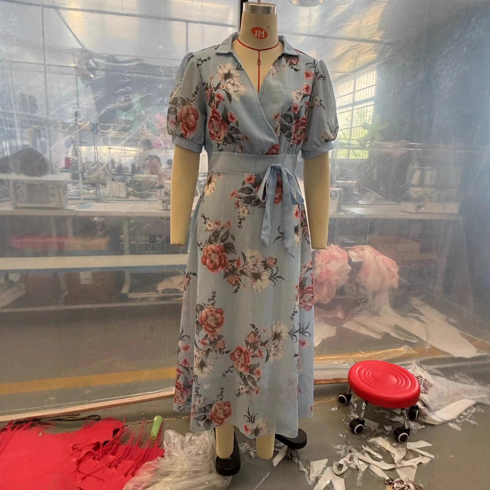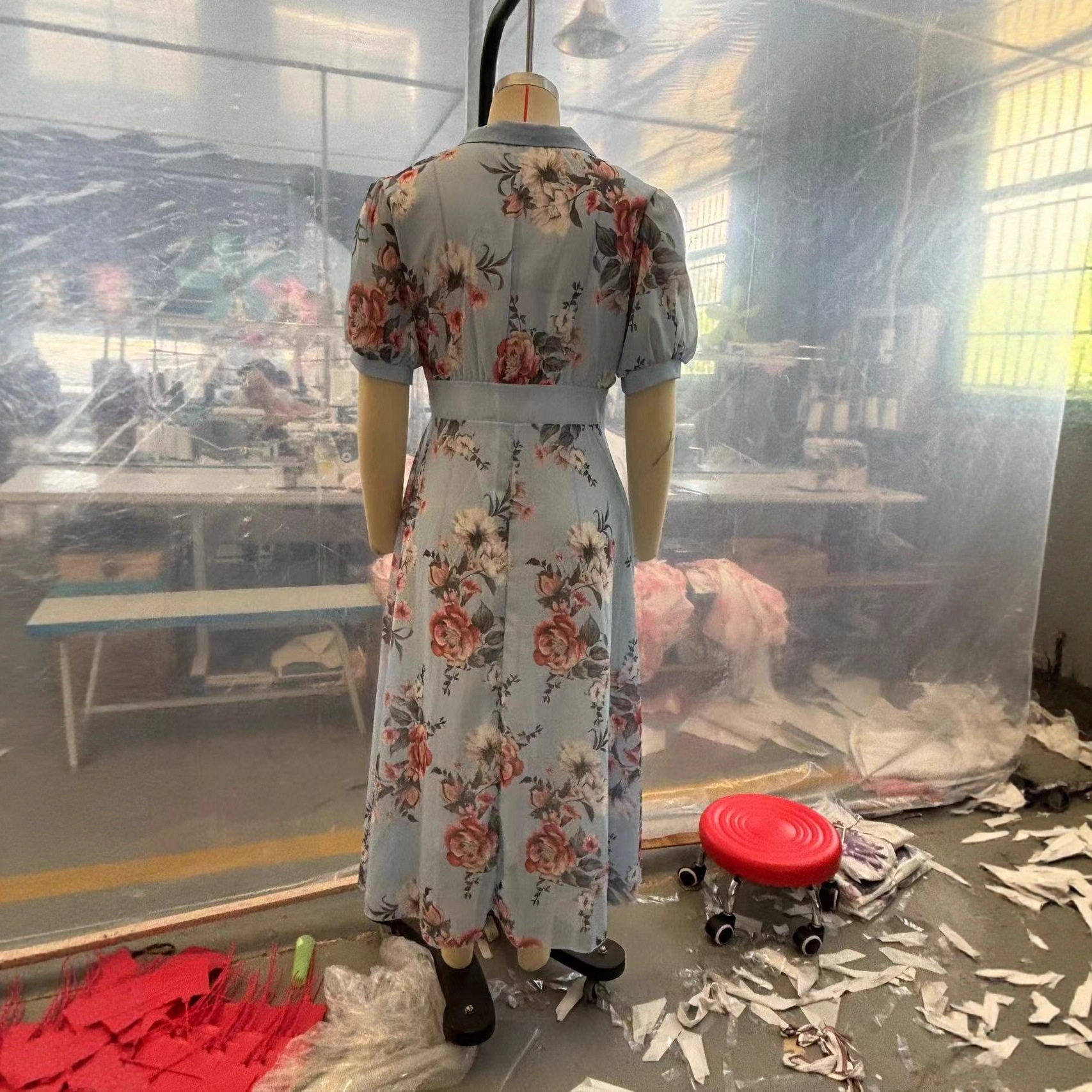 📚 收腰宽松连衣裙女浅蓝色印花 Waist Cinched Flowy Dress Women