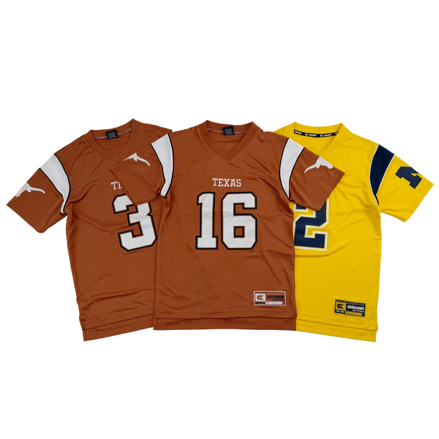 📚 NCAA大学联盟球长角牛密歇根青少年万针刺绣宽松运动T恤速干短袖