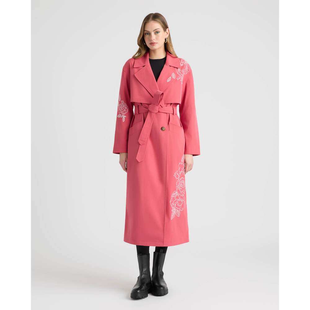 📚 自营NVLT Women’s Trench Coat with Embroideries - khaki gree