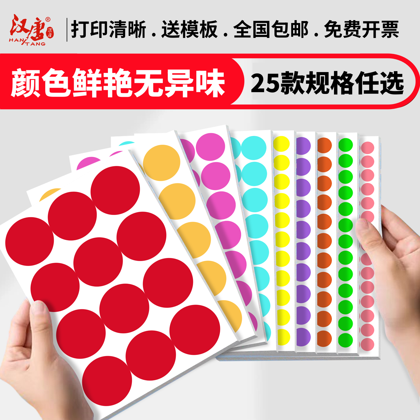 📚 汉唐彩色圆形不干胶标签打印纸A4手账圆点标签贴纸椭圆形不干胶贴纸定制正方形标贴纸印刷黄色笑脸圆点粘贴纸