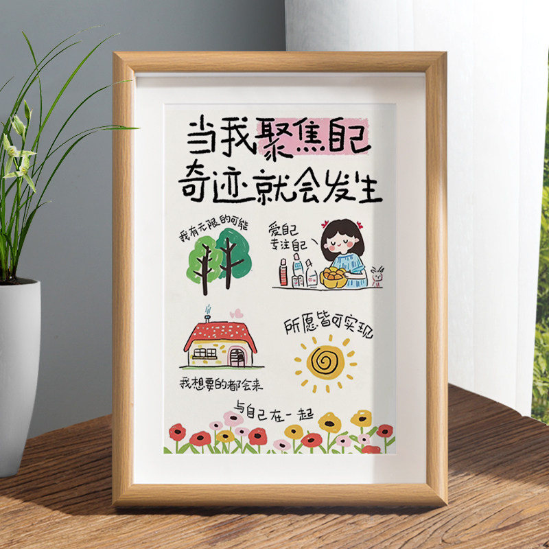 📚 首先你要快乐其次都是其次字画小摆件办公室桌面装饰相框摆台挂画