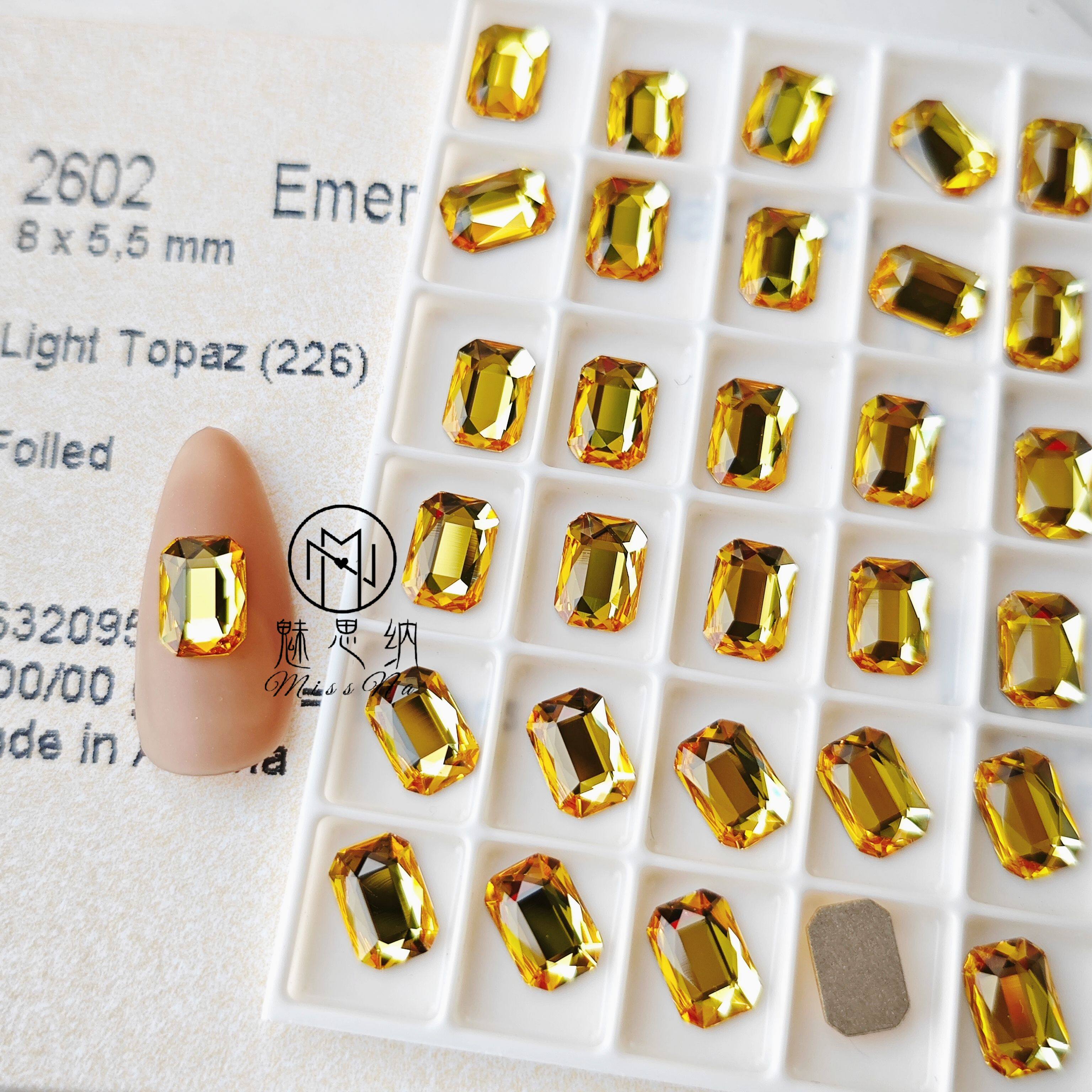 📚 [施]正 品奥钻华子平底长八角2602F长方形美甲异形钻金黄色葵黄钻