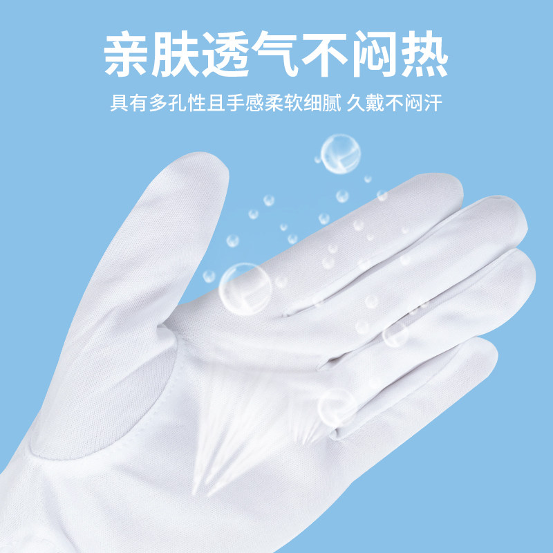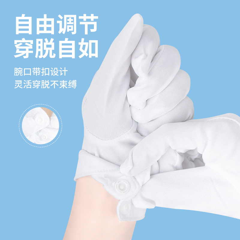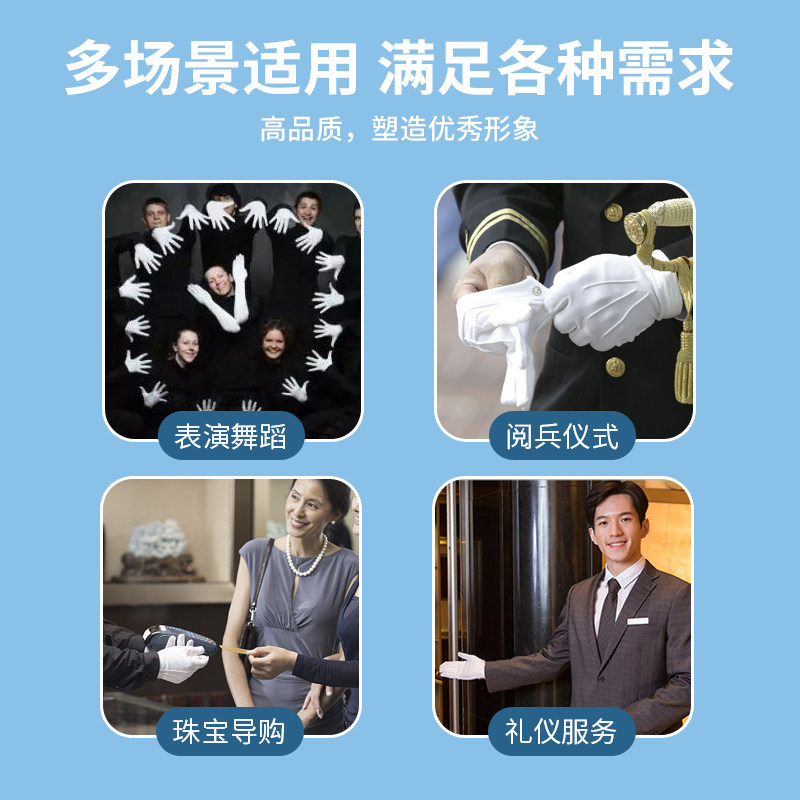 📚 三筋礼仪纯棉带扣白手套开车司机防晒男女薄透气检阅表演礼宾工作