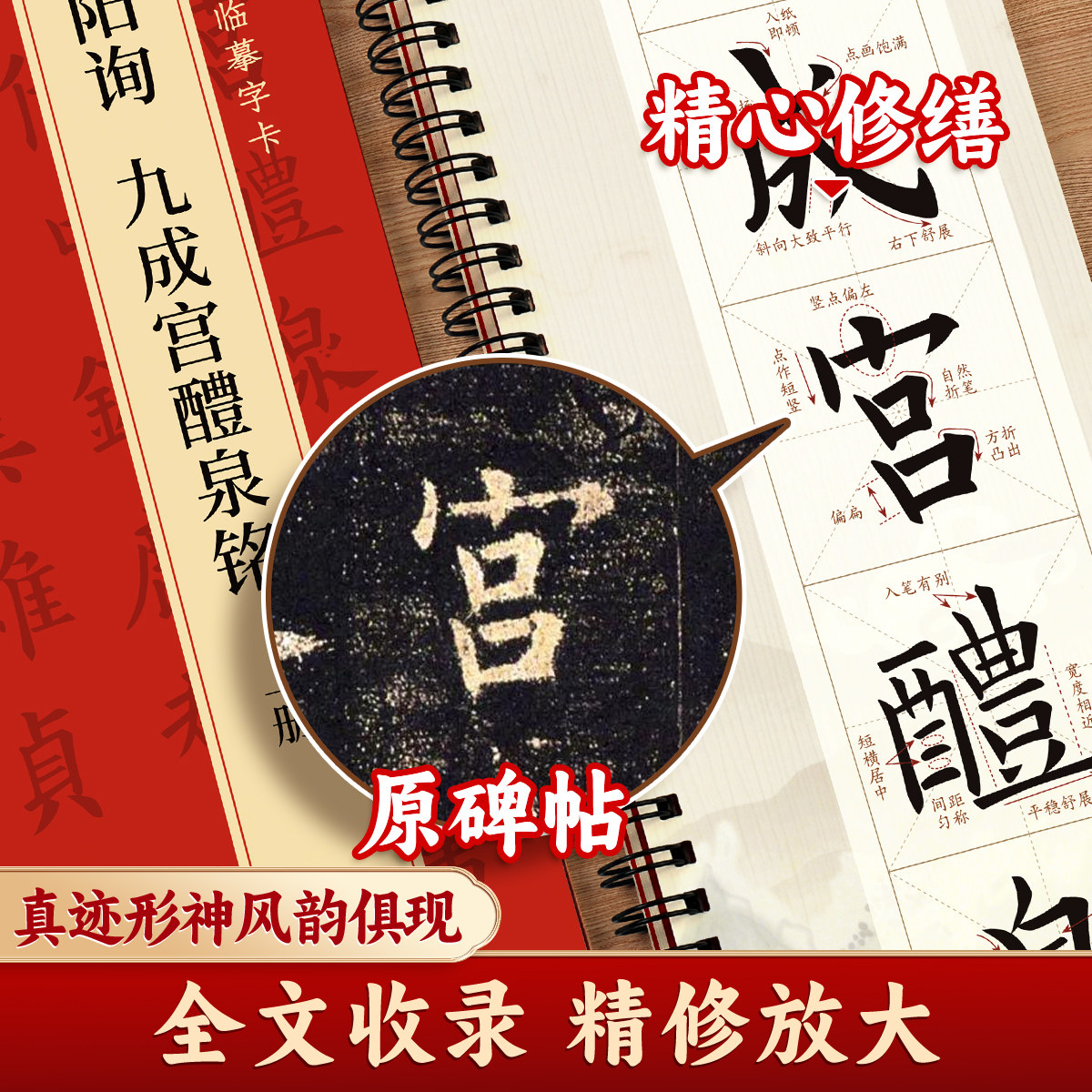 📚 【欧阳询九成宫醴泉铭】楷书近距离临摹字卡原碑帖上下册毛笔书法精修放大描摹素材成人学生书法爱好者每日一练毛笔初学者练习字帖