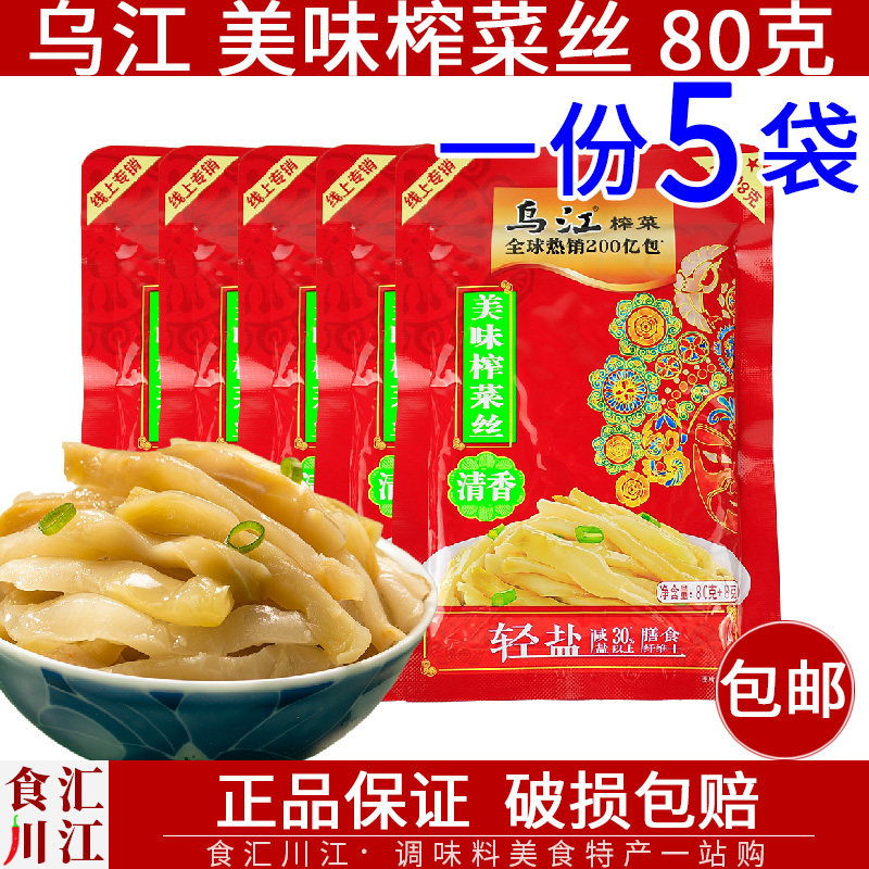 📚 乌江美味榨菜丝80g*5袋包邮清爽鲜脆清淡下饭菜咸菜涪陵特产