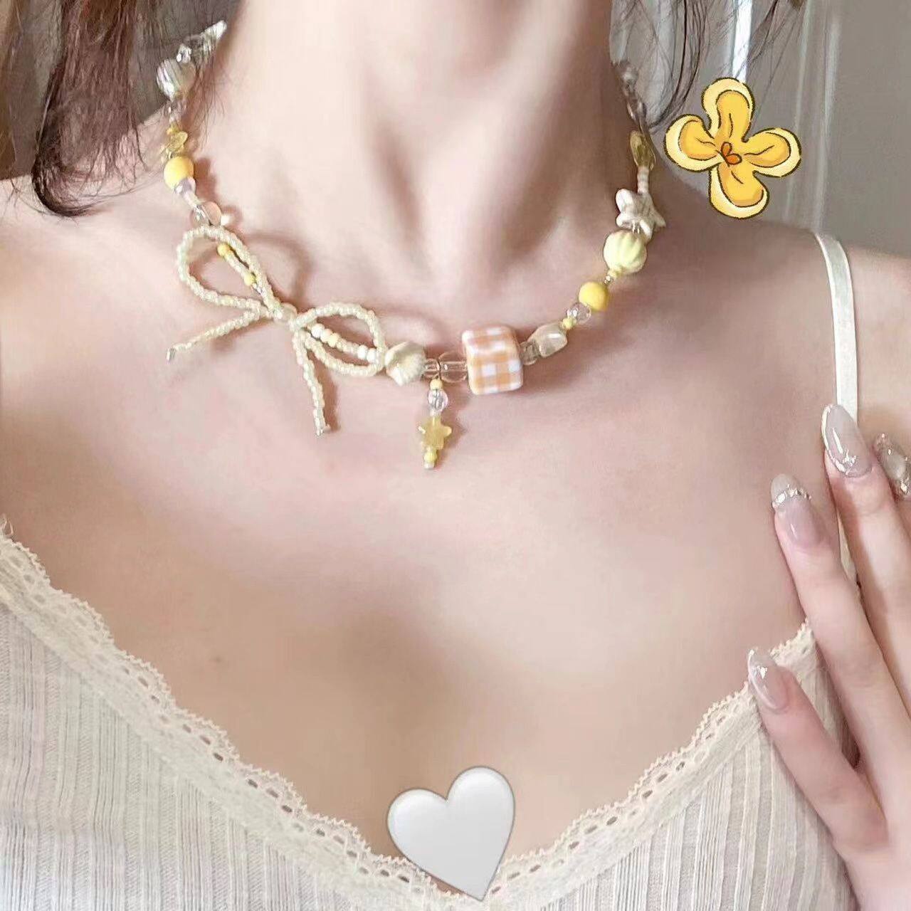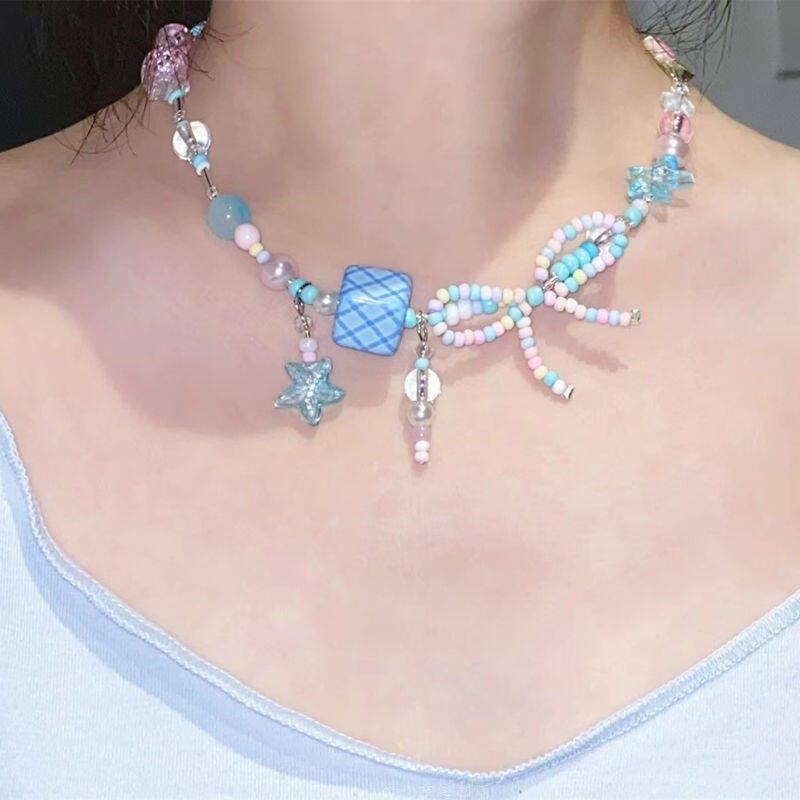 📚 夏日彩色多巴胺琉璃串珠项链女轻奢小众脖子配饰颈链高级感锁骨链