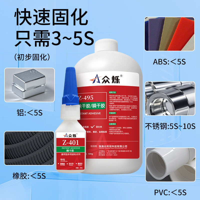 📚 众烁Z-495/401/460瞬干胶强力快干胶金属塑料陶瓷玻璃低白化高强度快干胶透明三秒速干胶手工模型胶