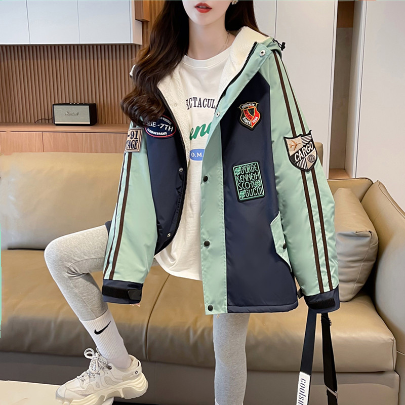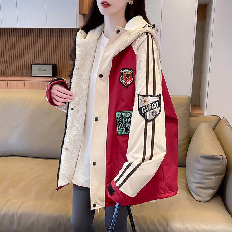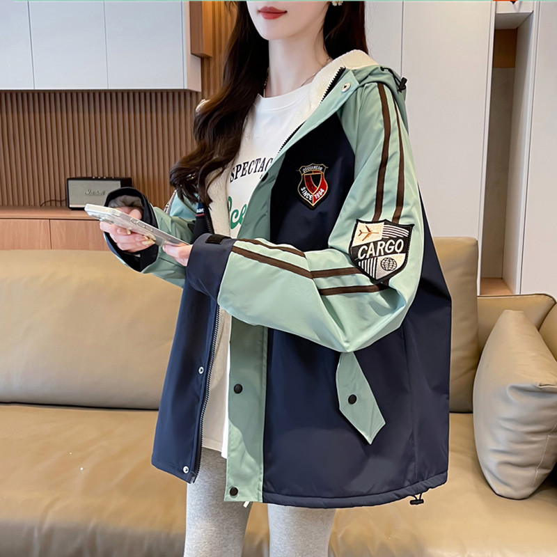 📚 工装冲锋衣棉服女款2025新款春秋冬季加绒加厚初中学生羊羔毛外套