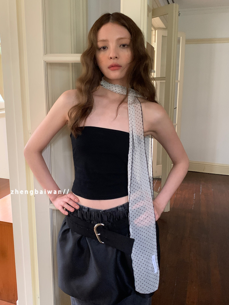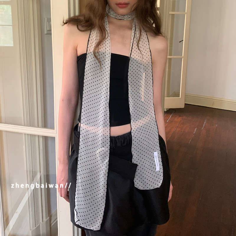 📚 郑佰万 韩国时髦复古单层纯欲风长条丝巾女百搭波点春夏薄款飘带