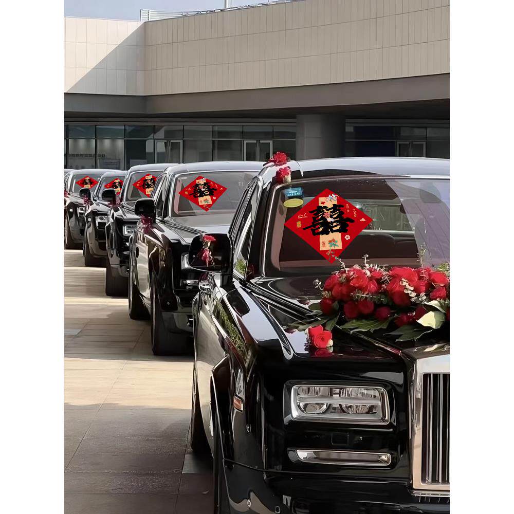 📚 婚礼布置喜字贴纸结婚必备车贴婚车装饰专用静电贴玻璃贴婚庆用品
