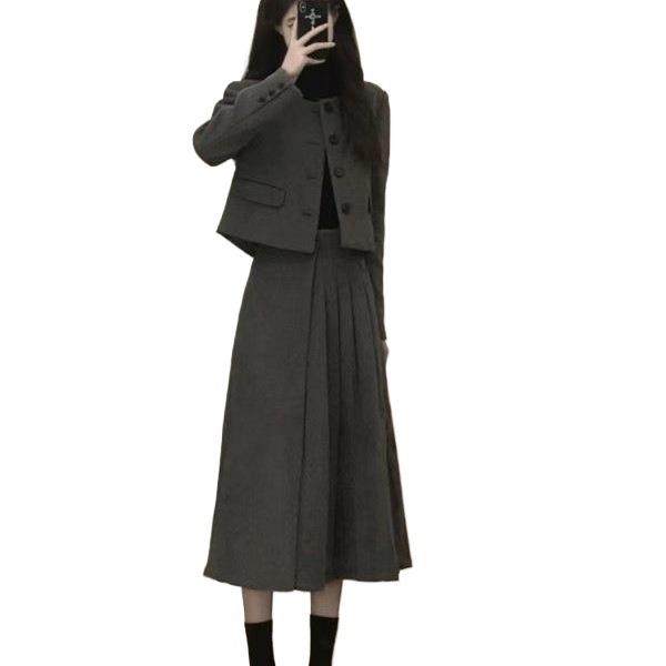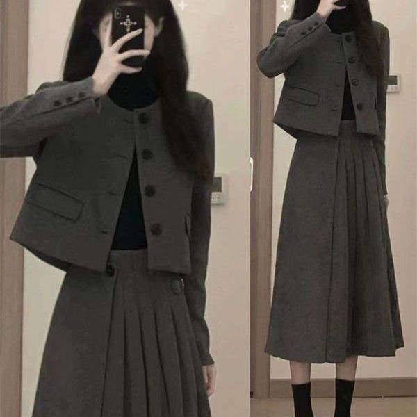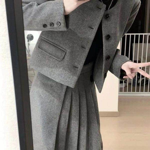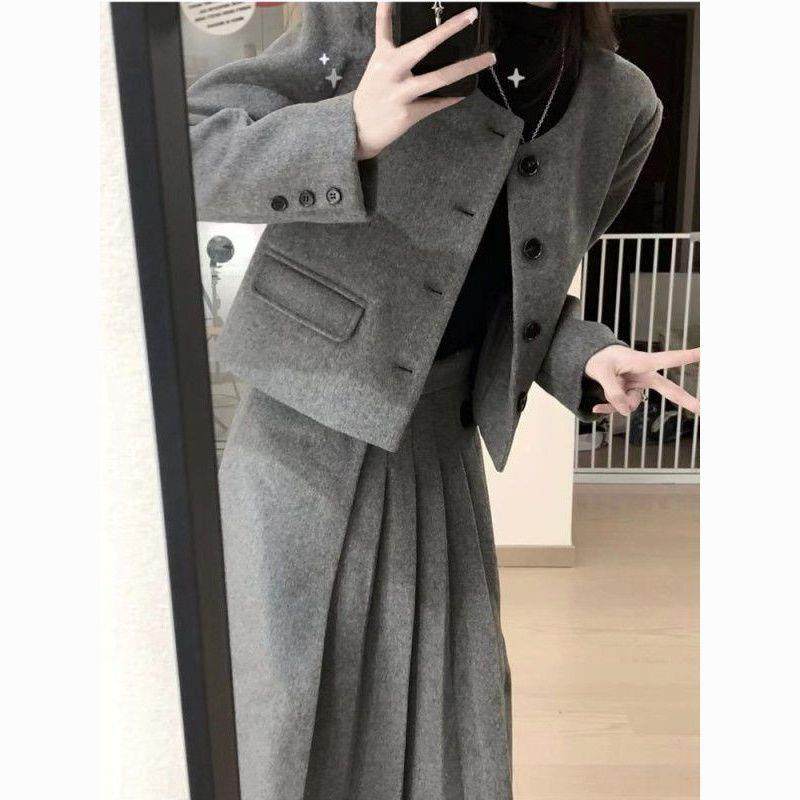 📚 胖mm显瘦遮肉感套装女大码秋冬新款毛呢外套百褶半身裙两件套