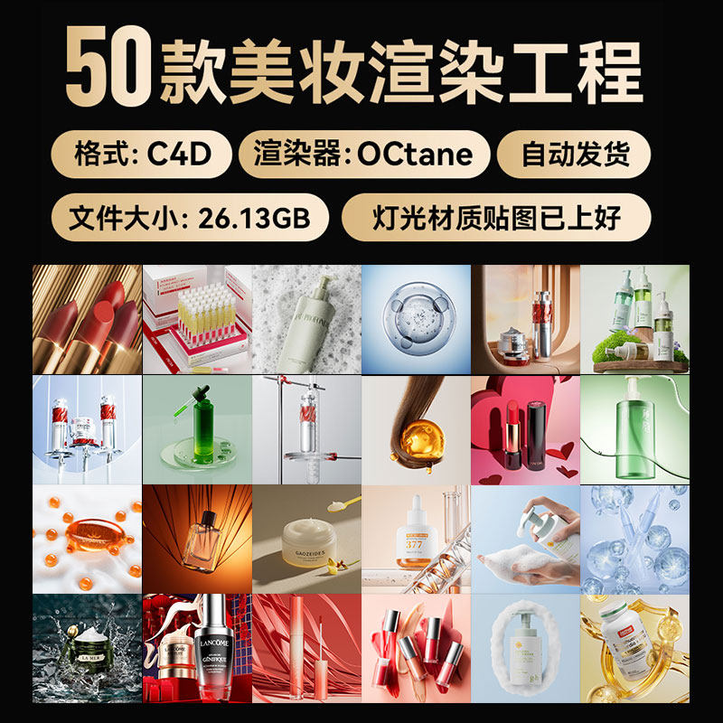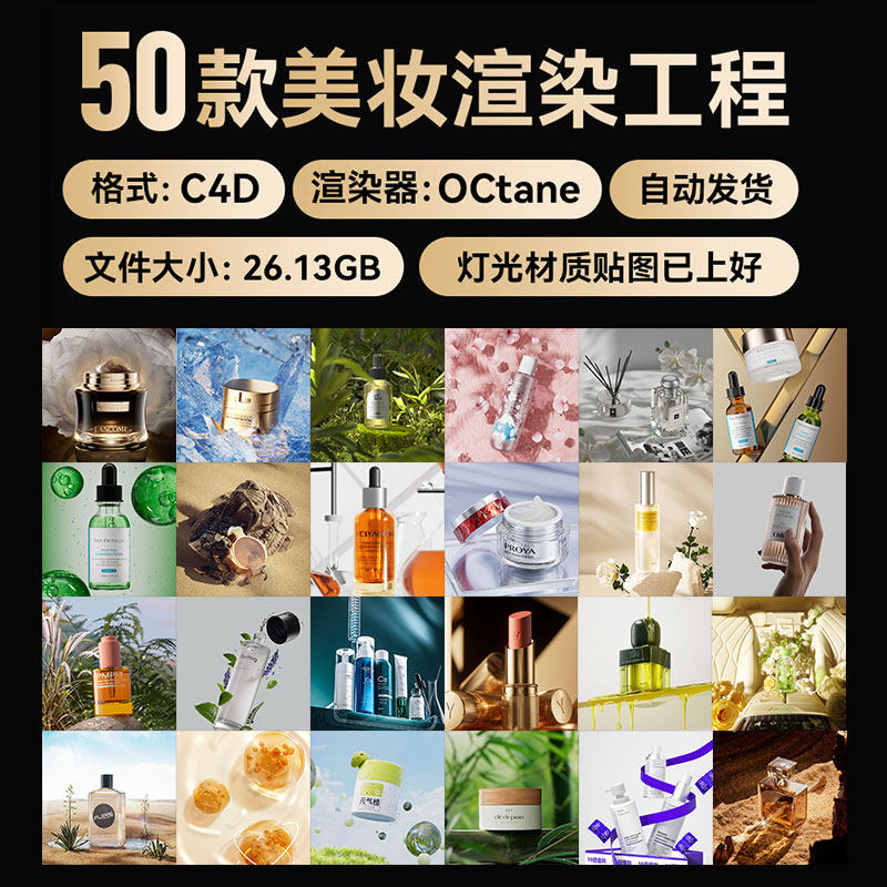 📚 C4D素材50款OC渲染工程美妆化妆品护肤品电商海报场景模型源文件