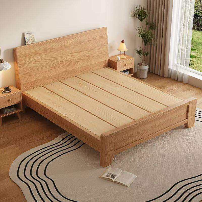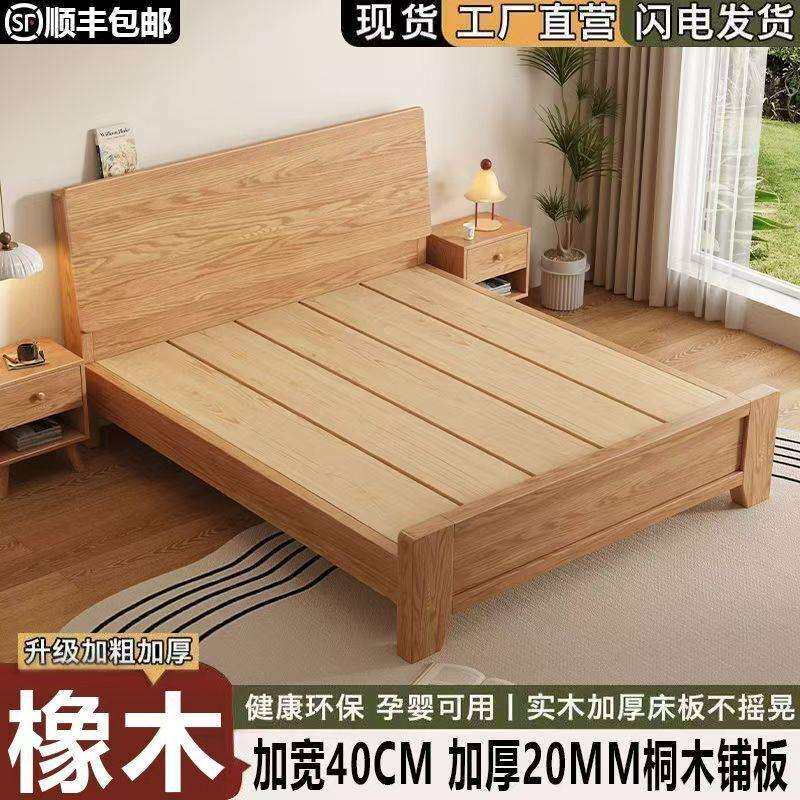 📚 斜靠实木床加宽加厚排骨架橡木床家用主卧双人床出租屋1.5单人床