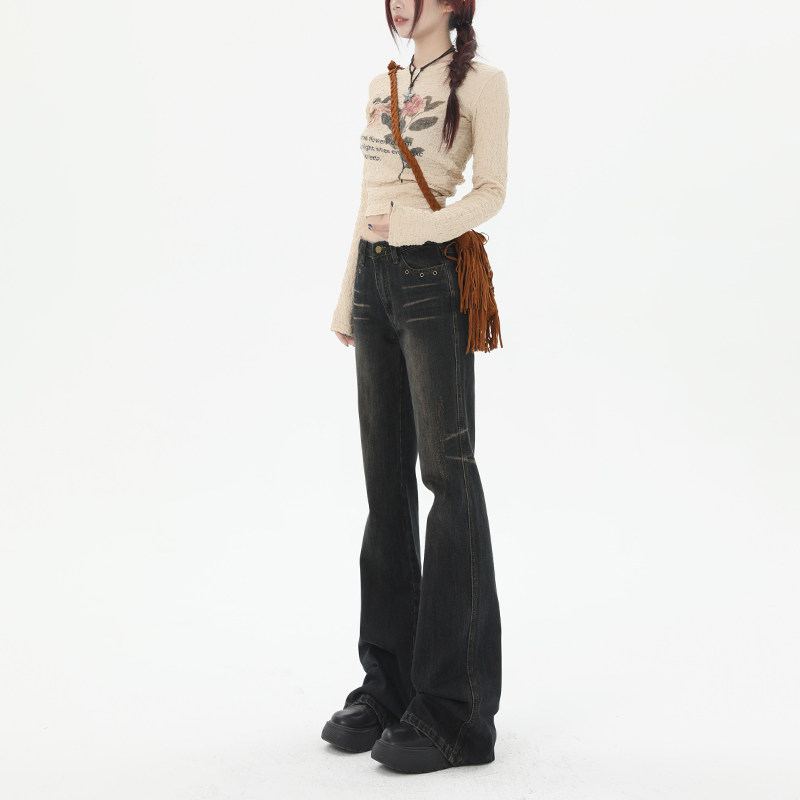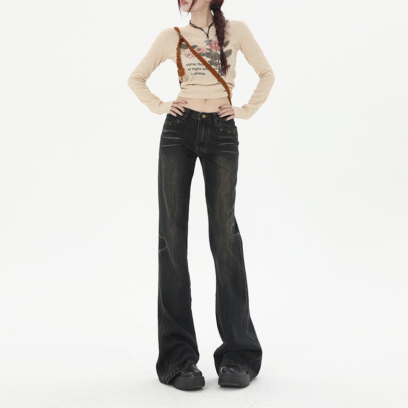 📚 RTRX复古微喇牛仔裤女2024秋冬新款设计感小众修身显瘦拖地喇叭裤