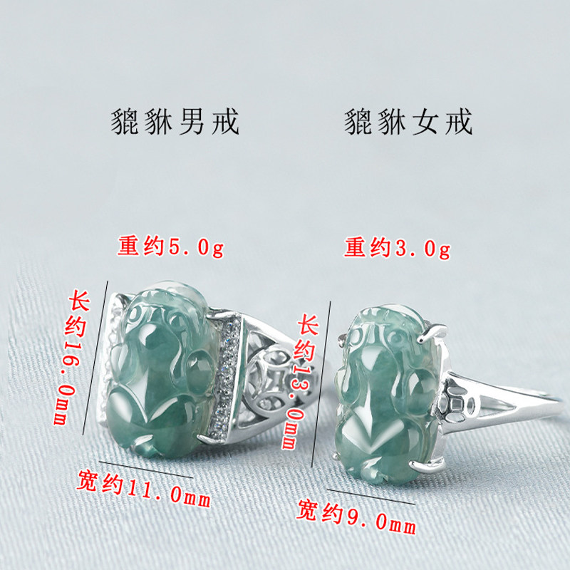 📚 s925银镶嵌纯天然a货翡翠蓝水貔貅玉石男女款可调节情侣时尚戒指