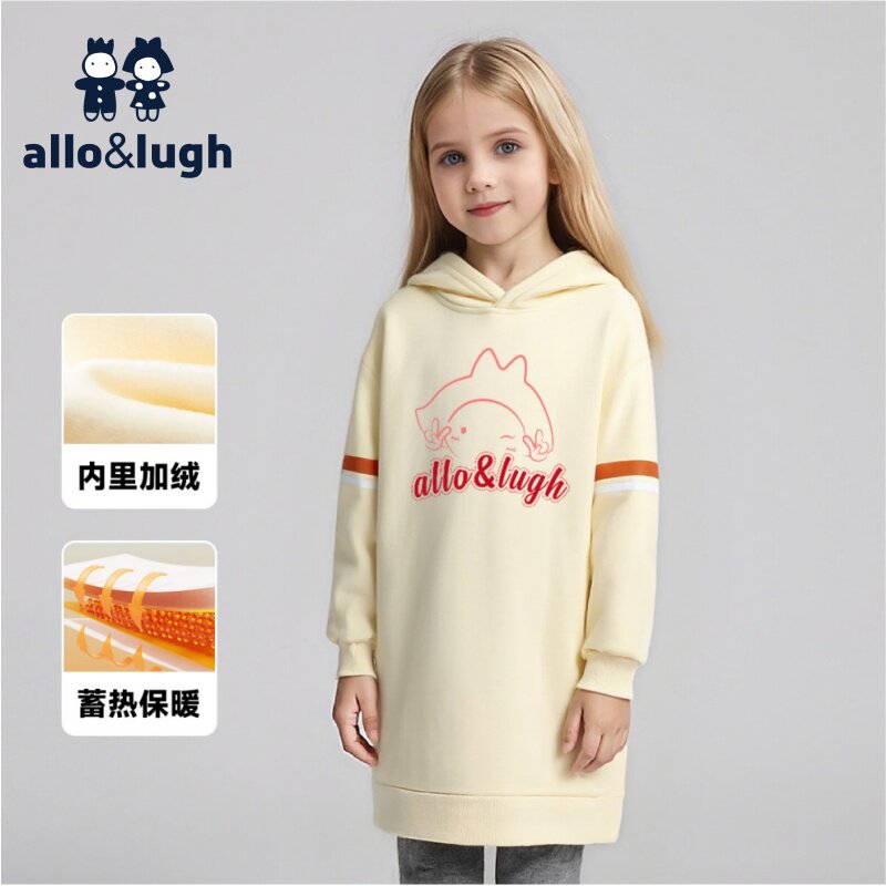 📚 【加绒保暖】阿路和如儿童连帽长袖卫衣裙女童卡通中长款连衣裙