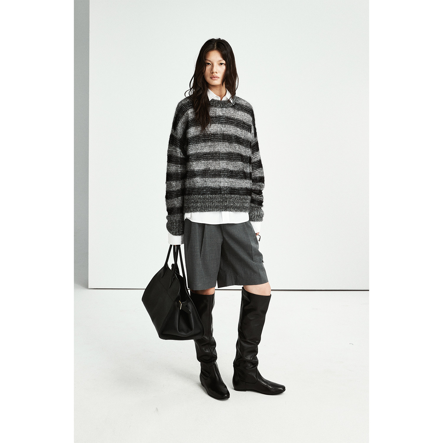 📚 MRS Studios 意大利进口Lineapiu马海毛慵懒宽松圆领条纹针织毛衣