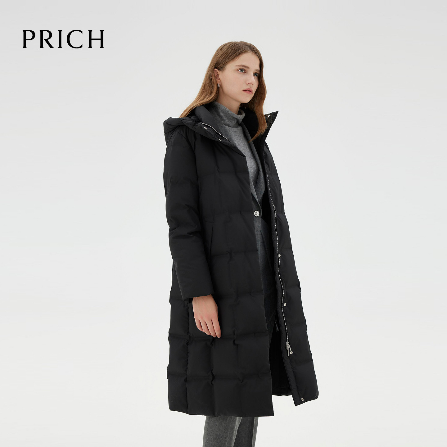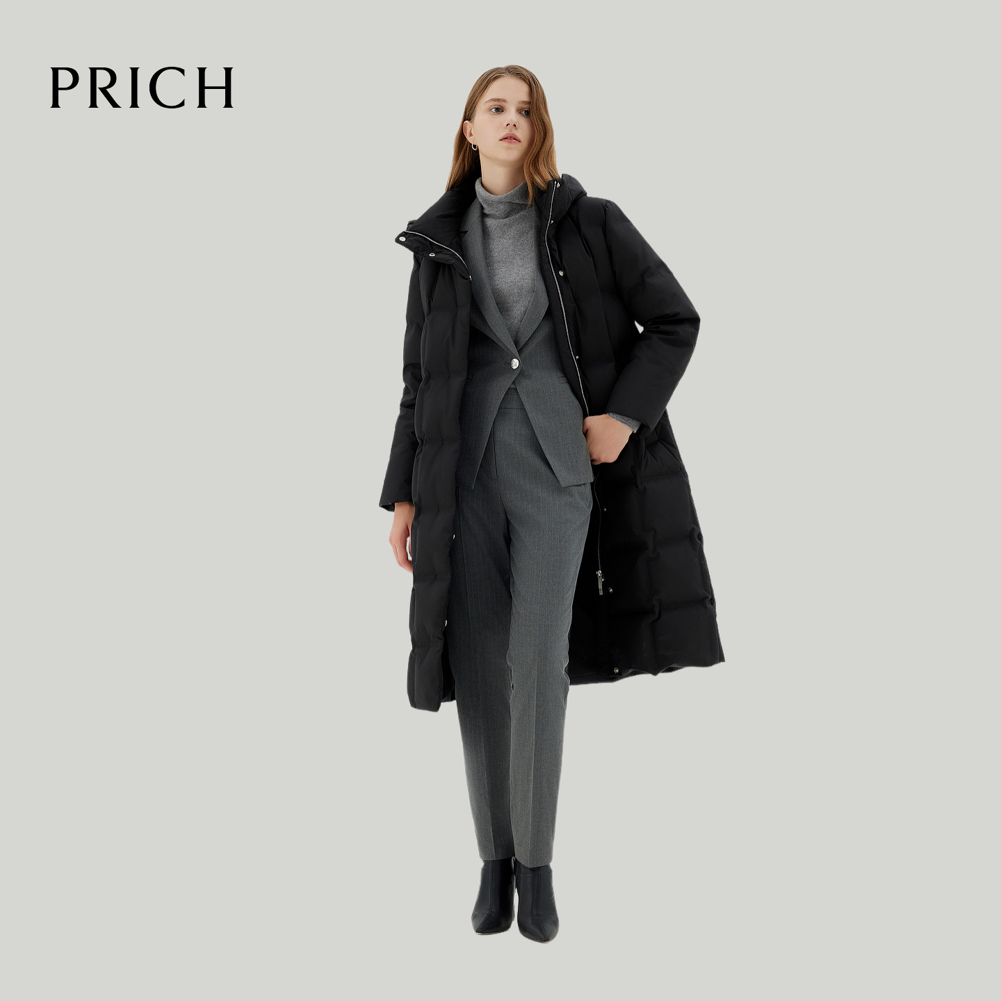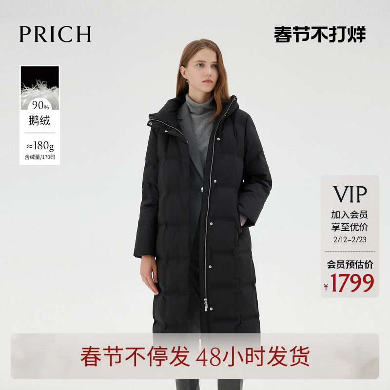 📚 【90%鹅绒】PRICH气质通勤连帽长款过膝羽绒服冬新品廓形外套女
