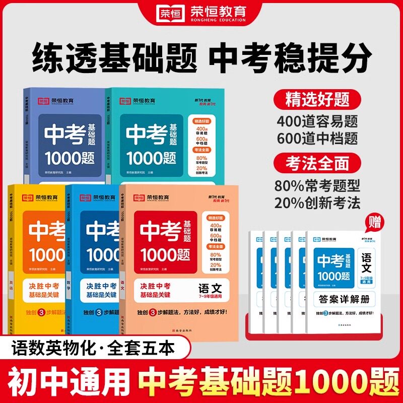 📚 中考基础题1000题初中语文数学英语物理化学全国通用中考真题初中必刷题基础2000题九年级一二轮复习资料初一二三全刷真题