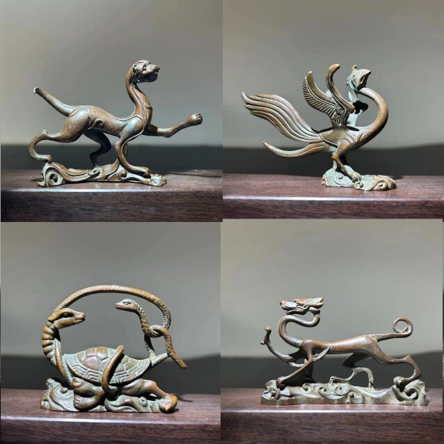 📚 中式古典金属四大瑞兽文镇古代四大神兽龙龟解豸貔貅青龙玄武朱雀