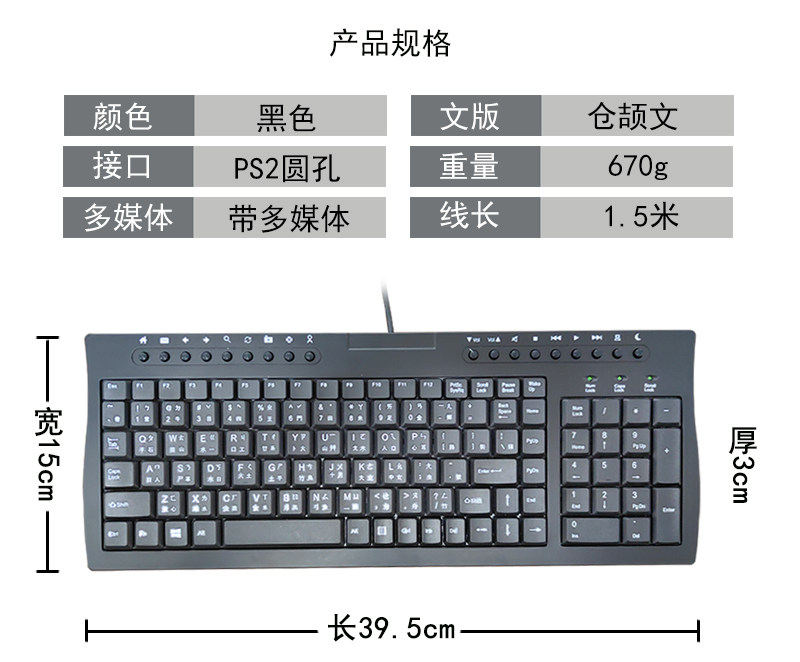 📚 台湾仓颉文键盘香港繁体仓颉字符码注音PS2圆孔接口繁体有线键盘