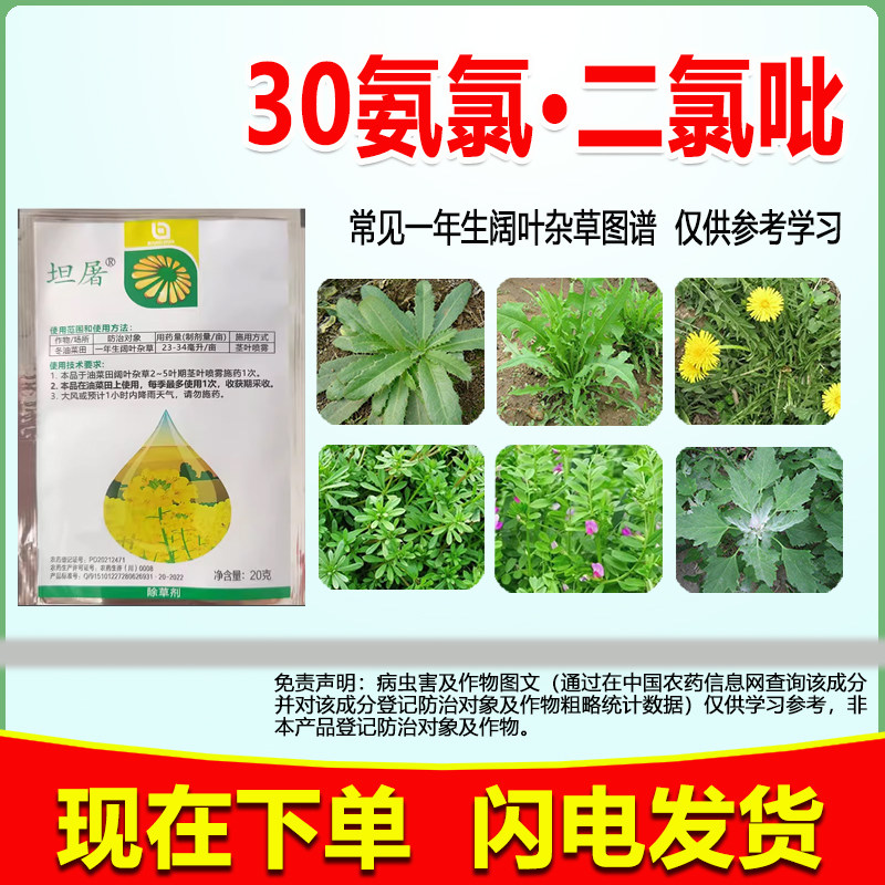 📚 农药除草剂氨氯二氯吡专杀阔叶杂草刺儿菜菊科杂草蒿子草坪除杂草
