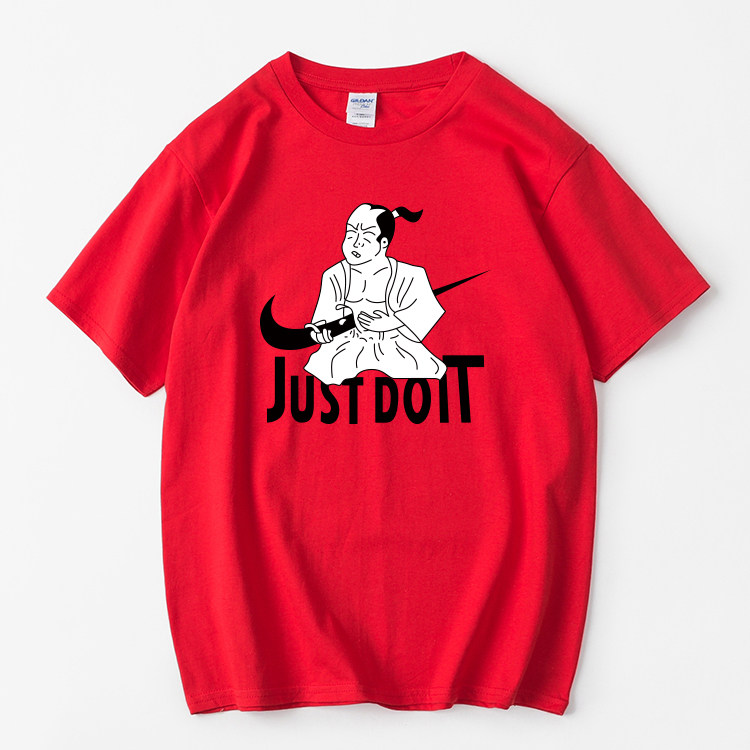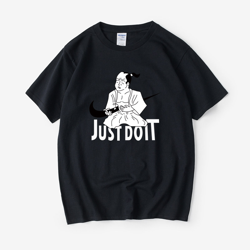 📚 日系潮牌原宿风恶搞日本武士just do itT恤短袖圆领夏季男女情侣