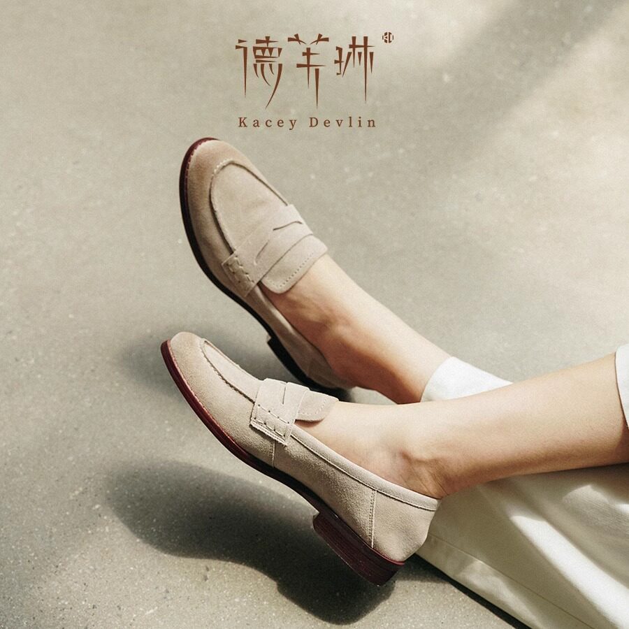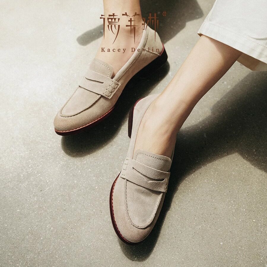 📚 德芙琳英伦乐福鞋气质女鞋真皮鹿皮绒面时尚单鞋超软不累脚小皮鞋
