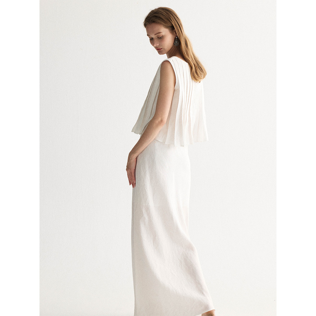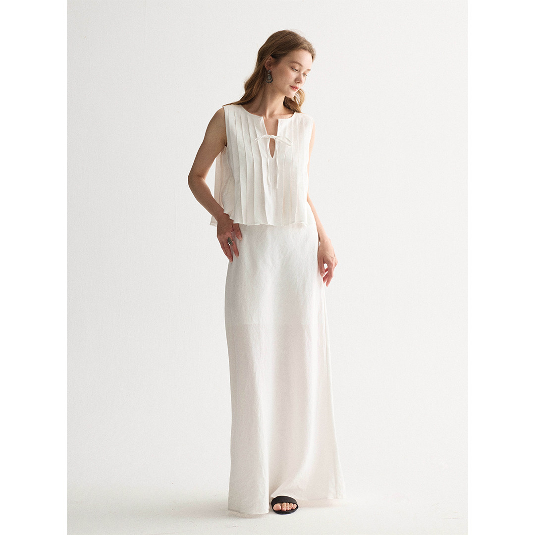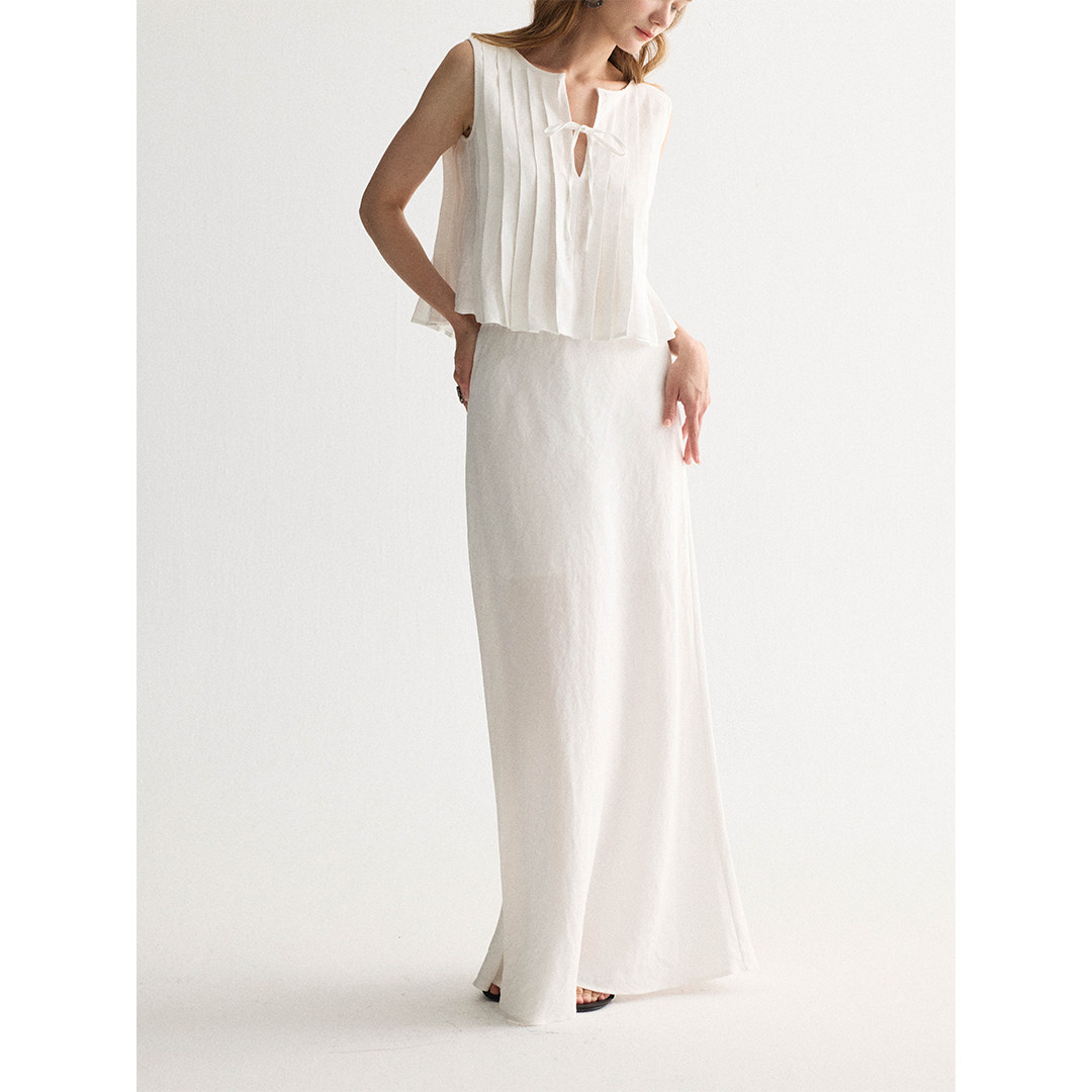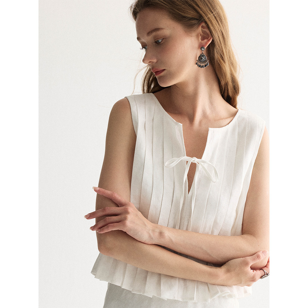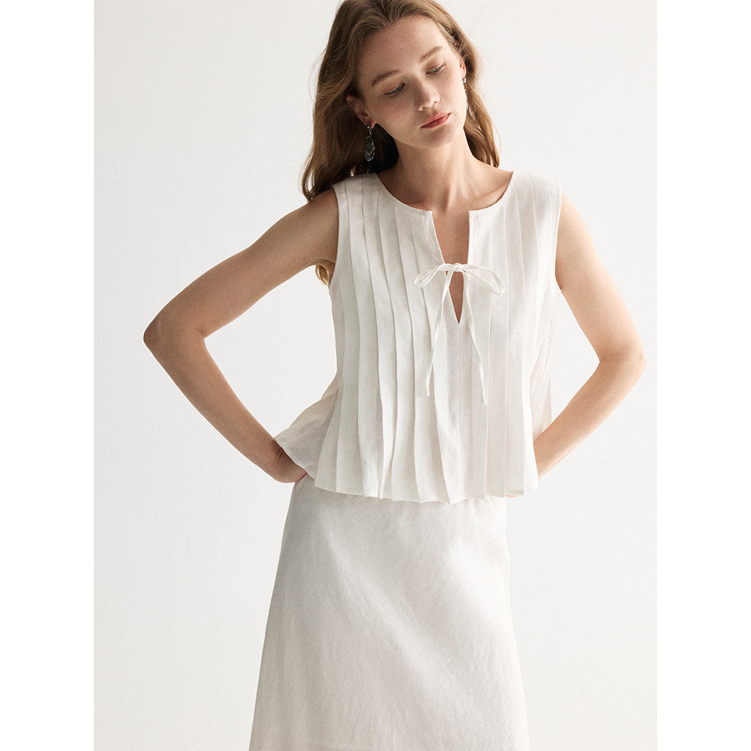 📚 SOFTSELF薄雾梦泽新款亚麻设计感镂空系带上衣直筒抽绳半裙套装夏