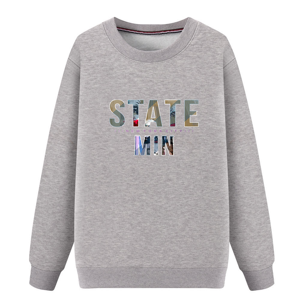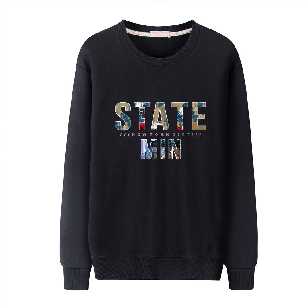 📚 秋冬纯棉加绒纯棉卫衣男圆领宽松春秋季纯棉长袖T恤卫衣男打底潮