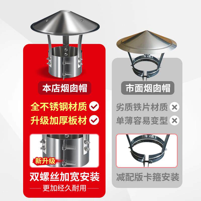 📚 不锈钢烟囱防雨帽160排烟排气管帽烟道室外烟筒盖防风帽农村土灶