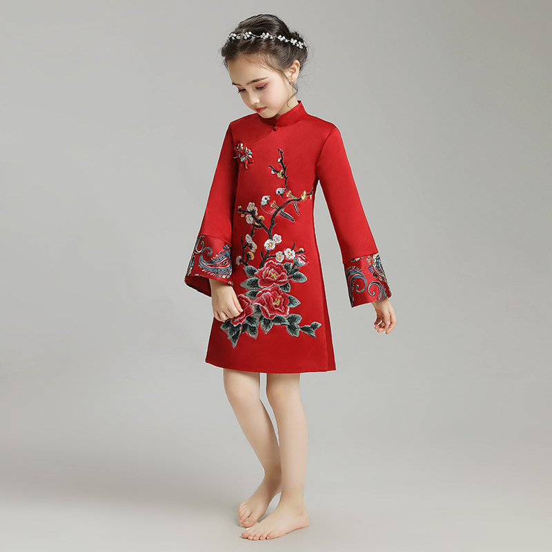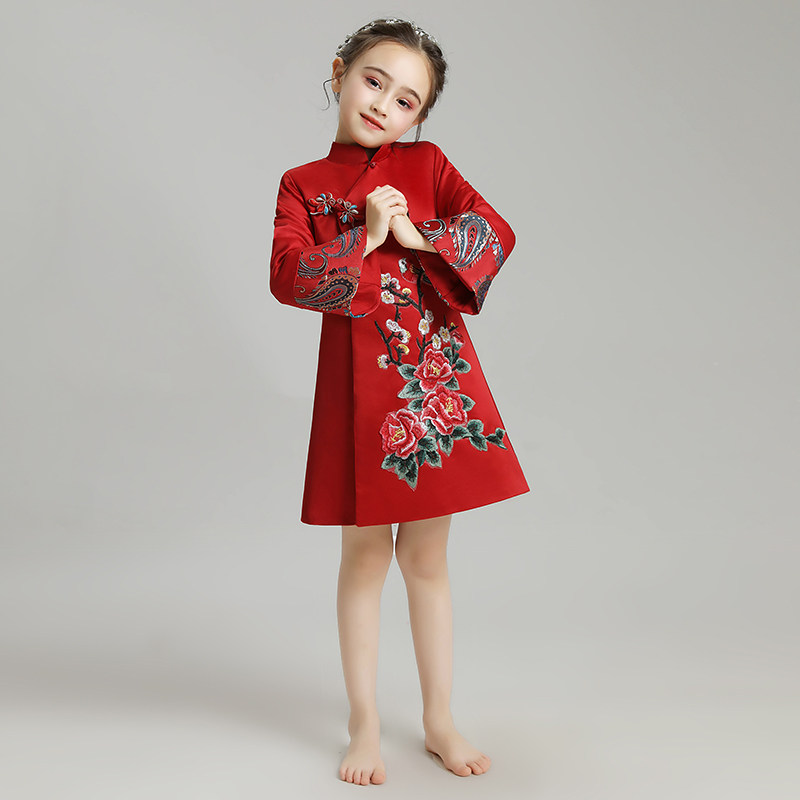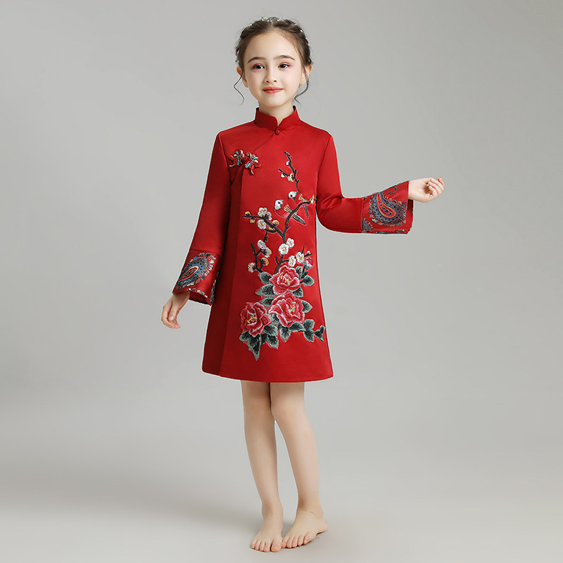 📚 女童旗袍裙儿童晚礼服公主裙女孩古筝演出服拜年长袖加棉加厚洋气