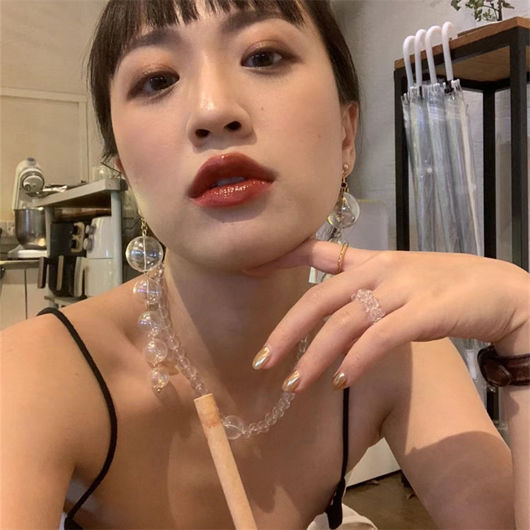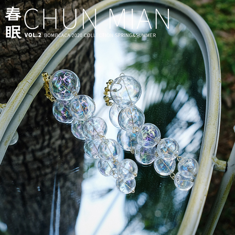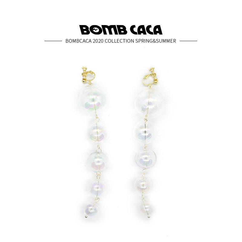 📚 BOMBCACA春眠系列 鱼泡泡透明幻彩玻璃珠连串新娘结婚耳环 耳钉女